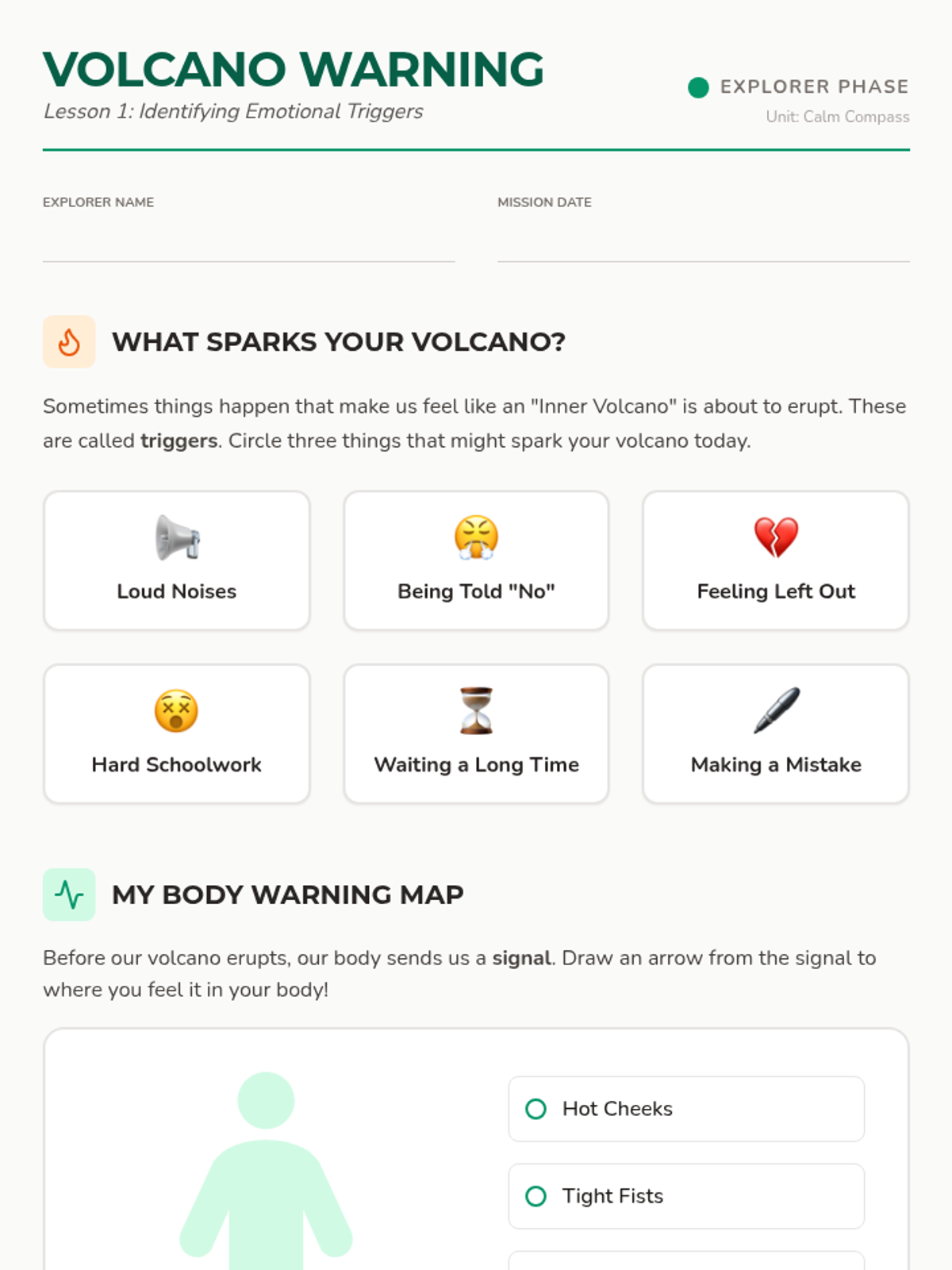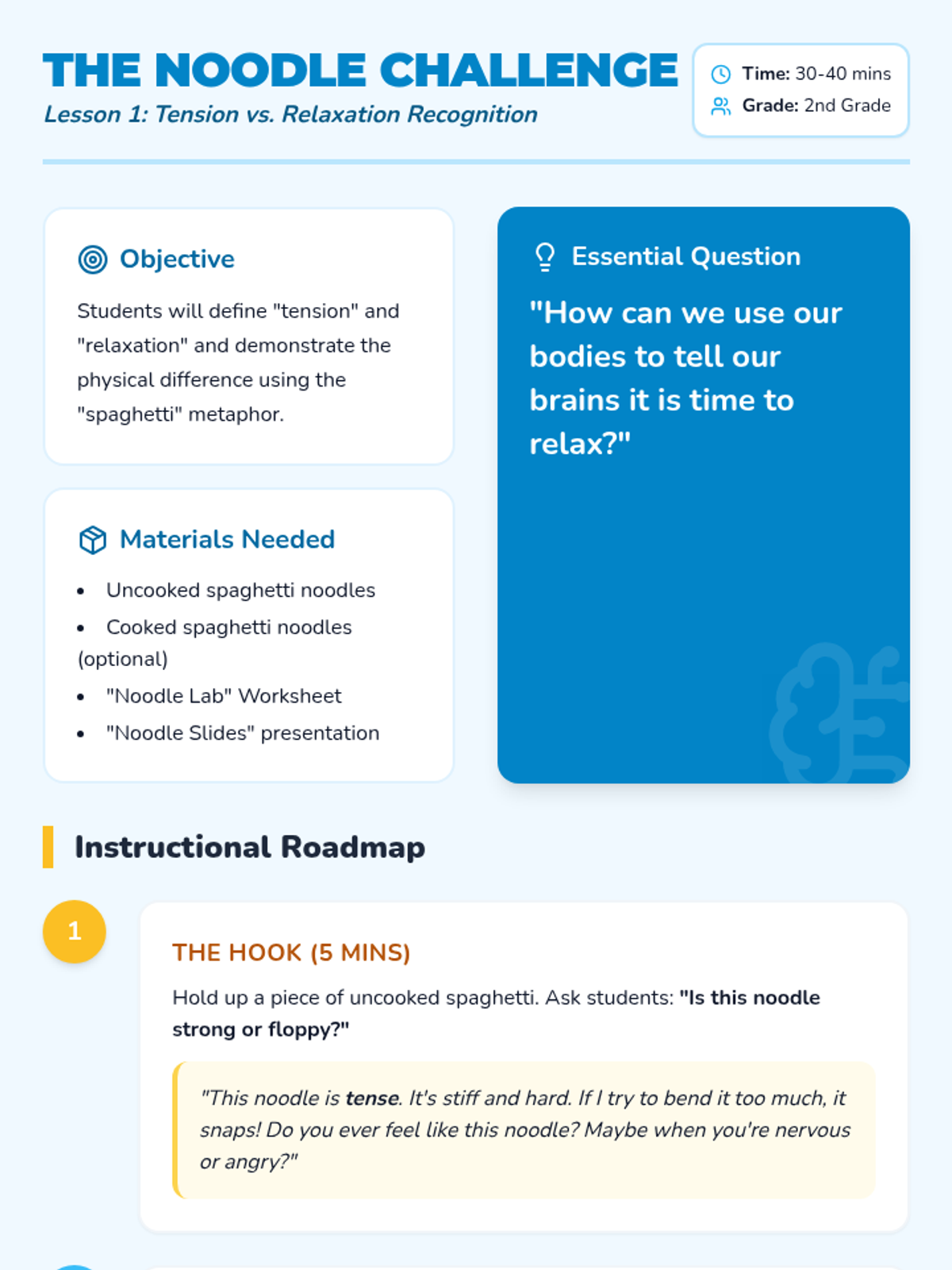 A comprehensive 5-lesson sequence designed for 2nd-grade students to master down-regulation and environmental adjustments. Students move from identifying sensory triggers to building a personalized toolkit for emotional regulation and focus.