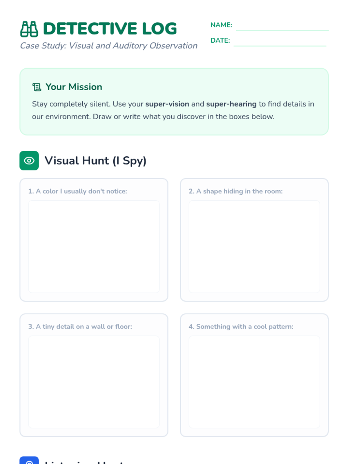 A 5-lesson sequence for 2nd-grade students on using the five senses for emotional grounding and regulation. Students explore sensory awareness through a detective-themed series of lessons, culminating in the mastery of the 5-4-3-2-1 grounding technique.
