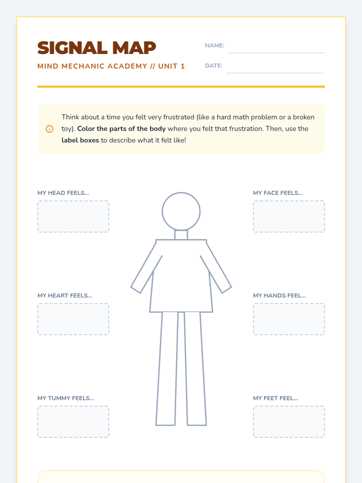 A two-session social-emotional learning unit designed to help students identify body signals associated with various emotions, aligned with IEP goals for self-regulation and emotional awareness.