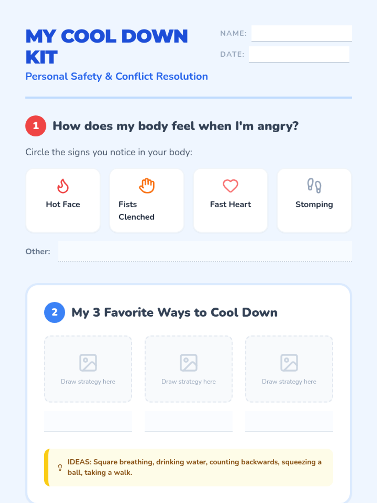 This sequence teaches 2nd-grade students to recognize physical signs of stress and use specific emotional regulation tools (breathing, self-talk, sensory) to adapt when plans change. Students build a physical 'Coping Toolbox' and practice applying strategies to real-world scenarios.