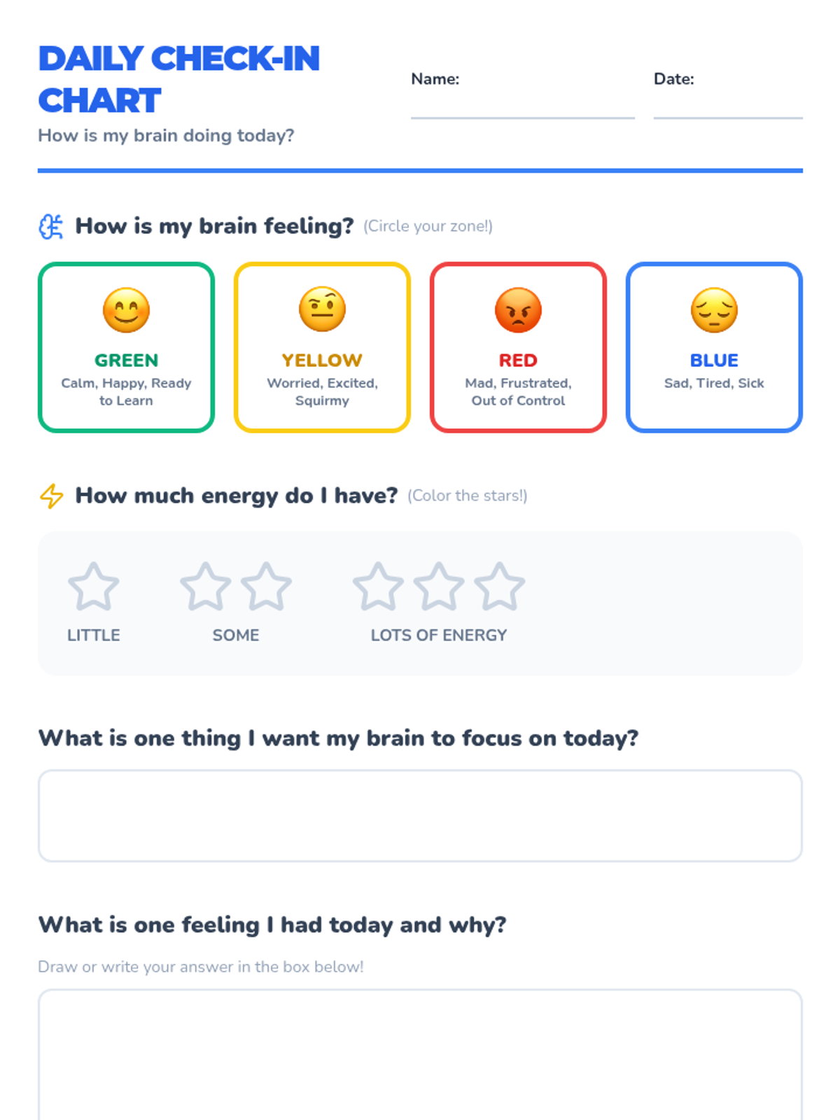 This mastery-based sequence teaches students to view check-ins not just as a morning event, but as a continuous cycle of self-monitoring and reflection. Students learn to track their emotional patterns over time, identifying triggers and successful interventions to develop long-term metacognitive habits.