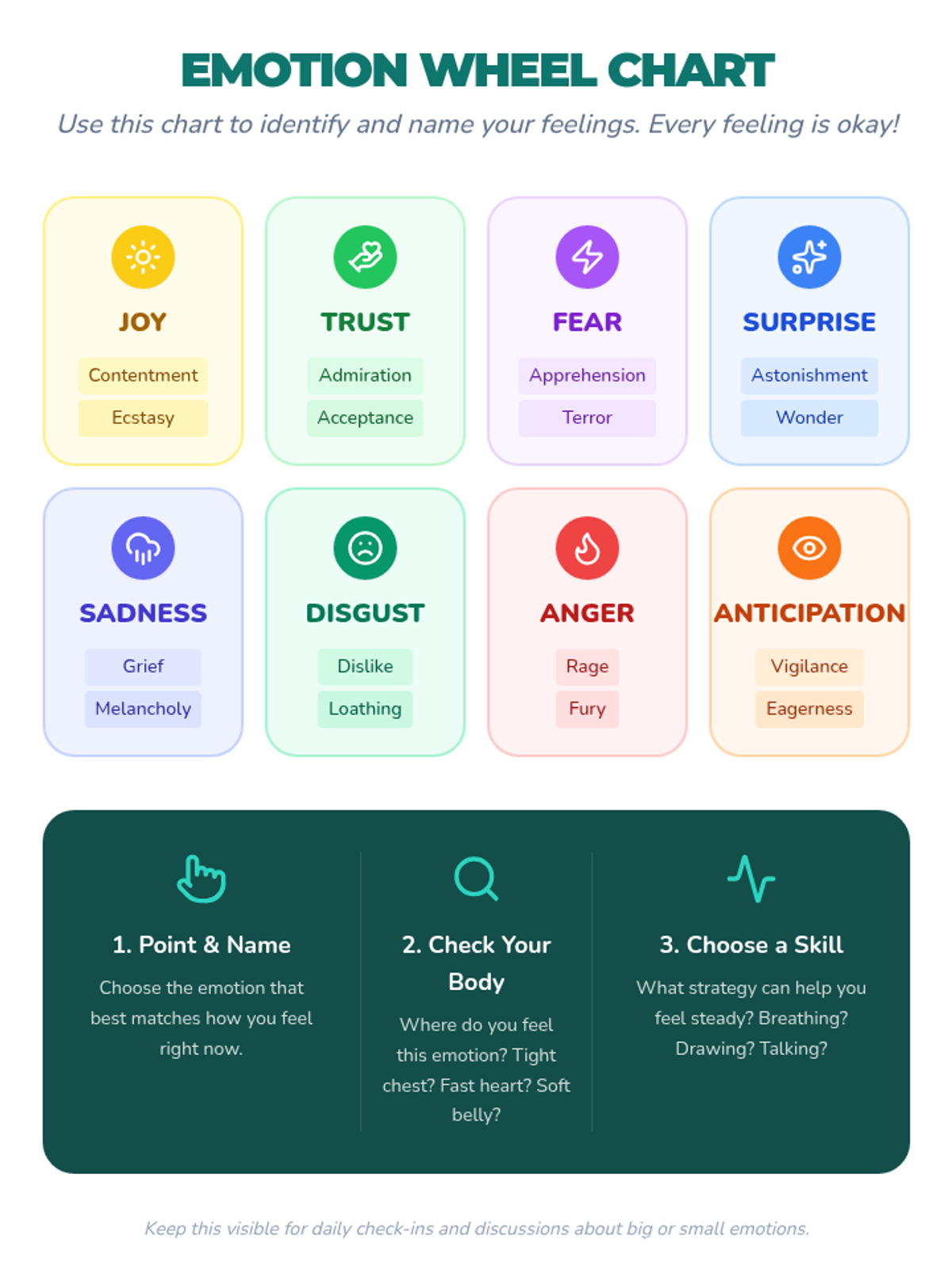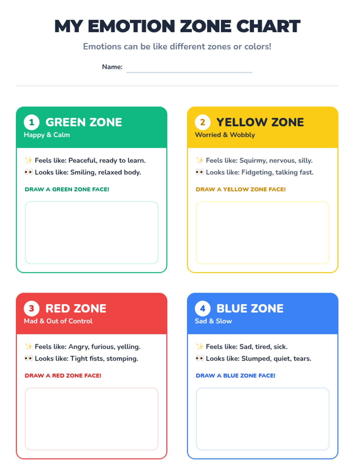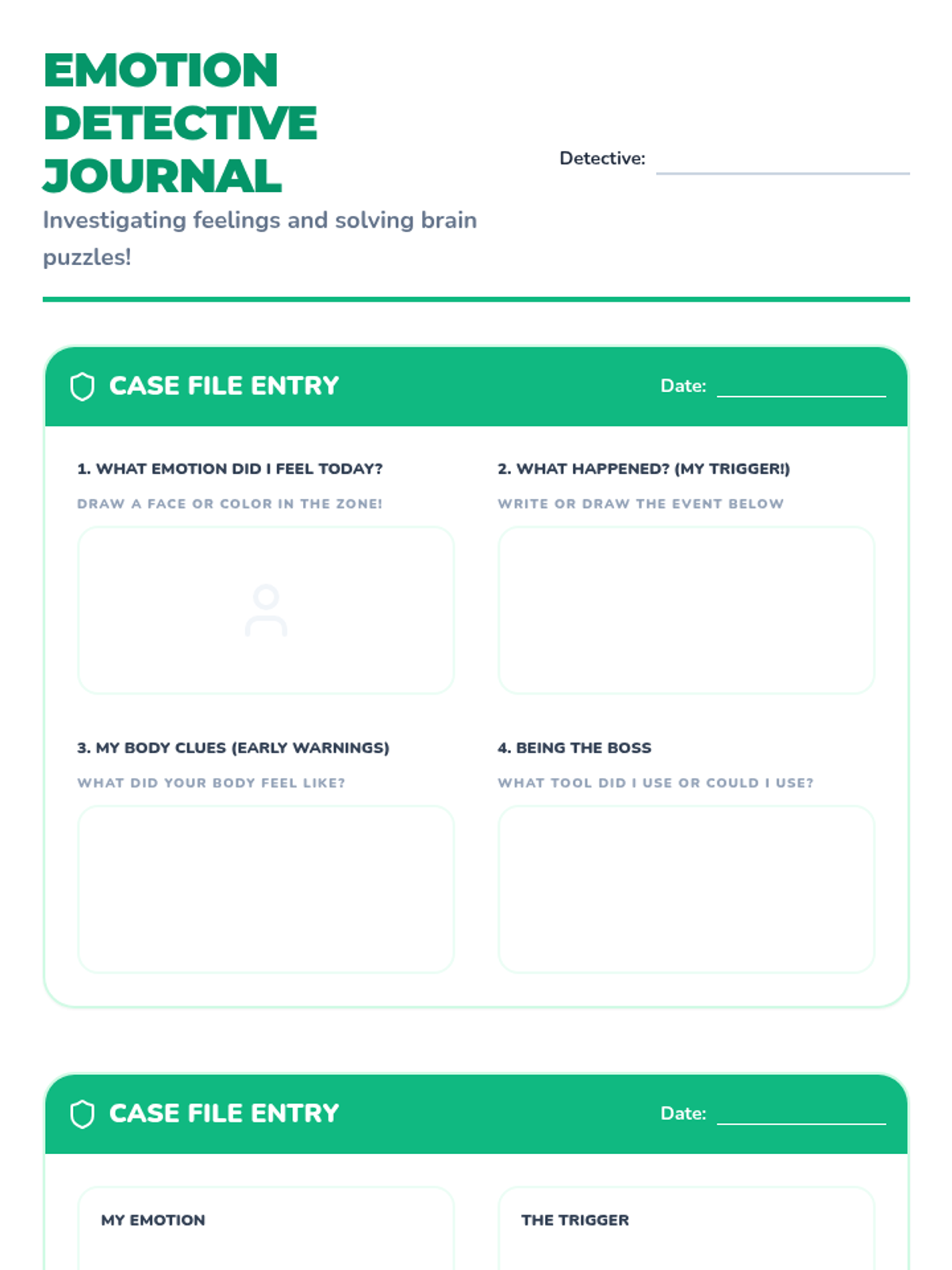 A comprehensive 5-lesson unit for 2nd graders to build somatic awareness, identifying physiological and behavioral signs of emotional escalation before they reach a crisis point. Students learn to recognize their 'baseline' calm state, map sensations to emotions, use an emotional thermometer, and identify personal warning signals.