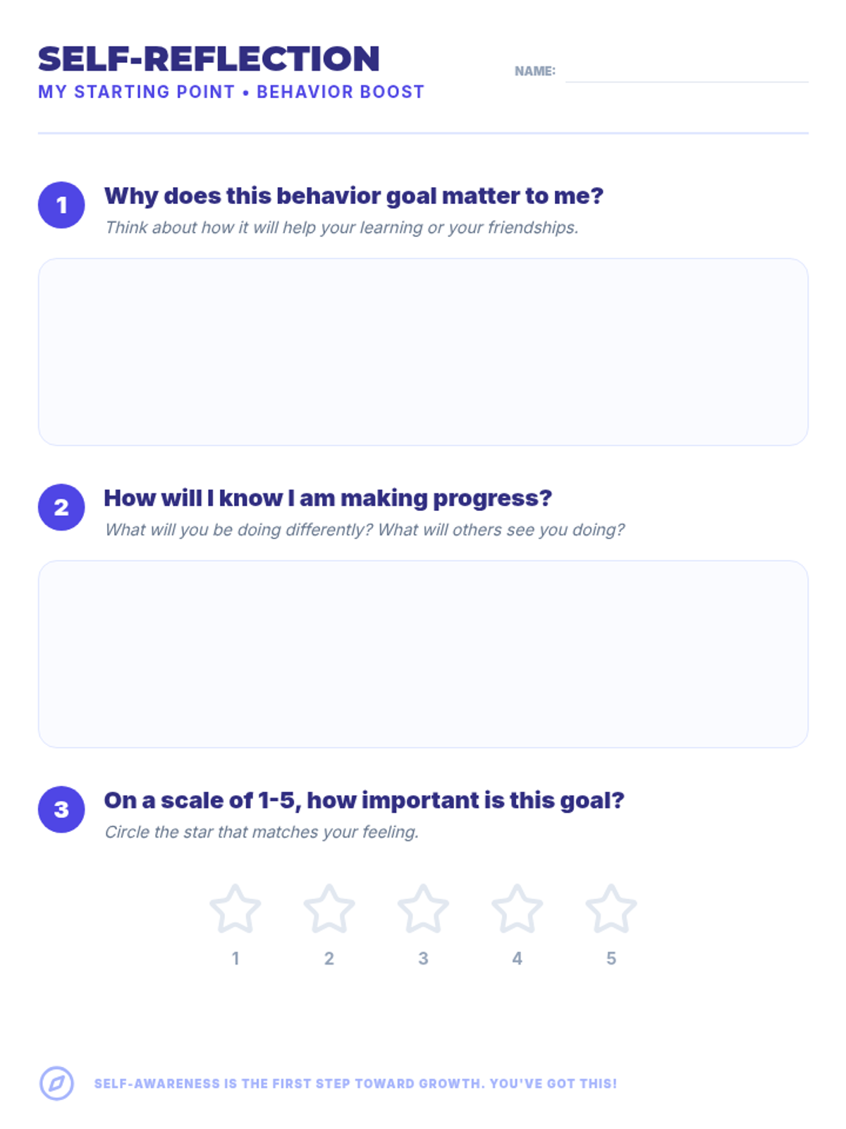 A four-session series designed for Tier 1 instruction, helping students build self-regulation through goal setting, tracking, and reflection. students develop personal accountability and positive classroom habits using interactive tools and peer support.