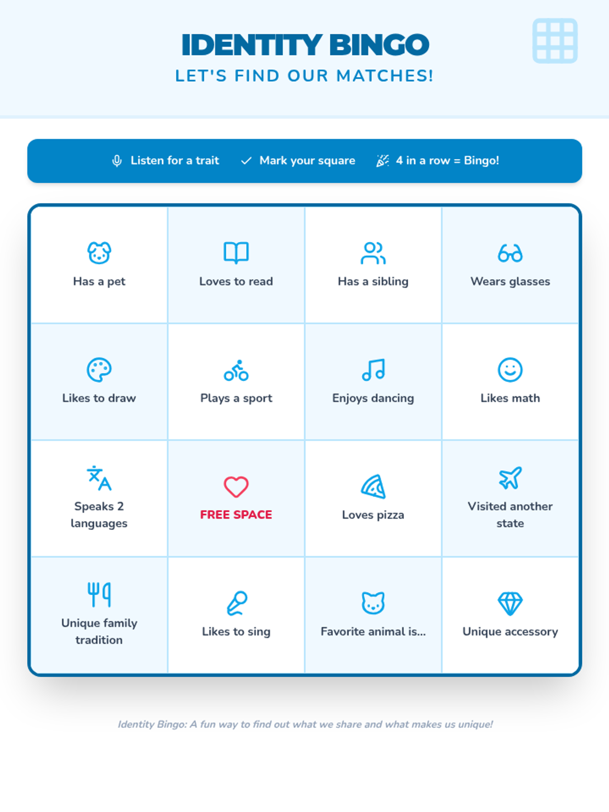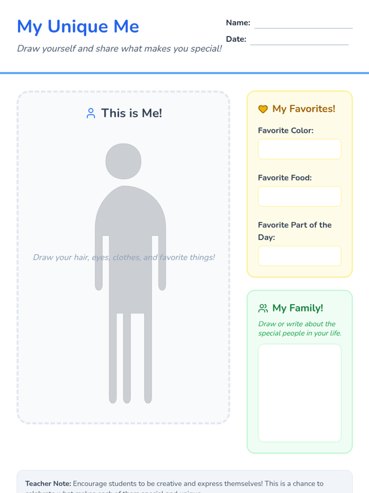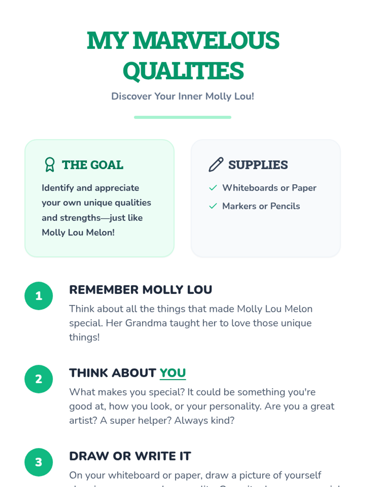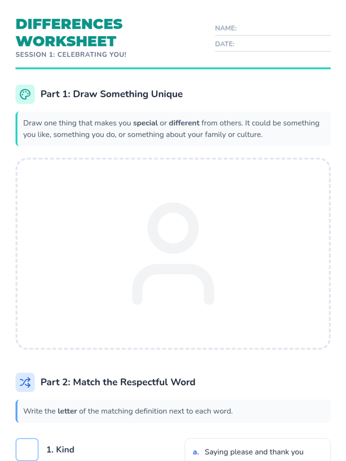 This sequence introduces students to the concept of personal identity by distinguishing between physical attributes and internal character traits. Students explore their own strengths, recognize how actions reflect identity, and learn to view growth areas through a growth mindset, culminating in a symbolic self-portrait.