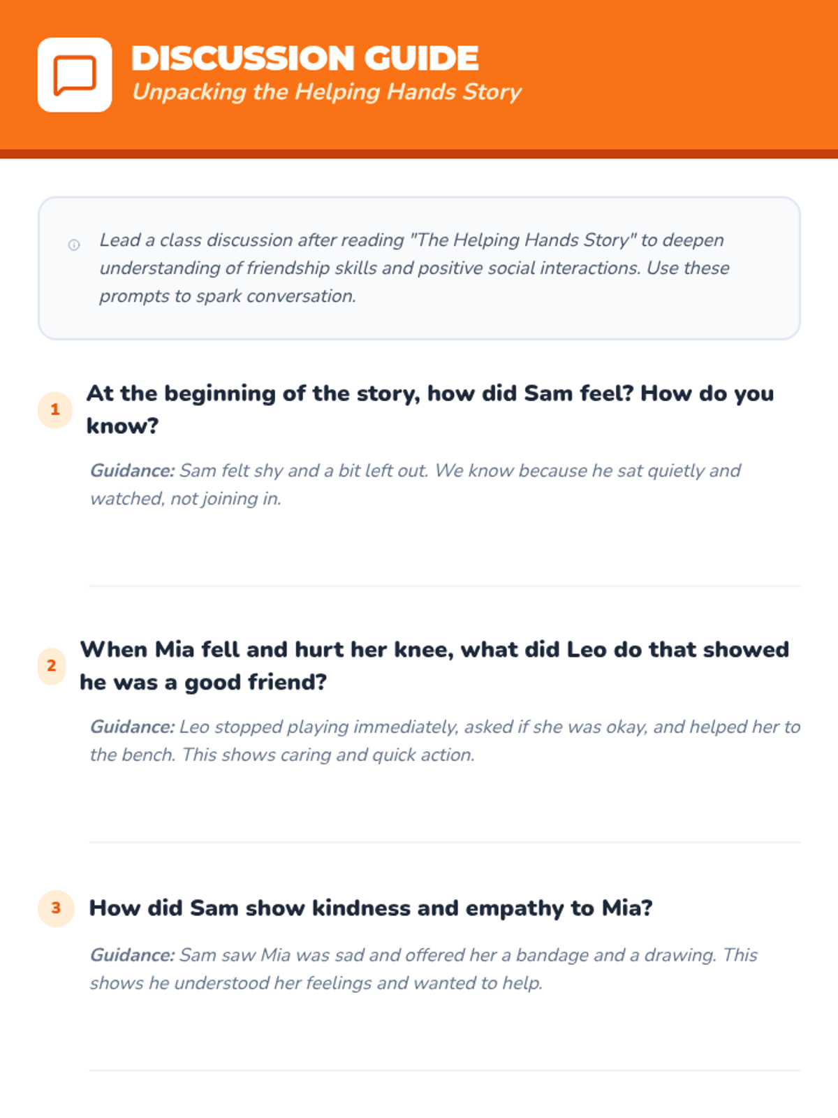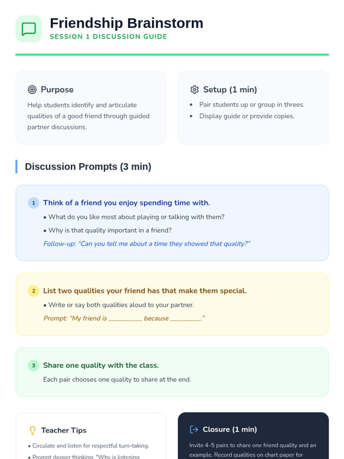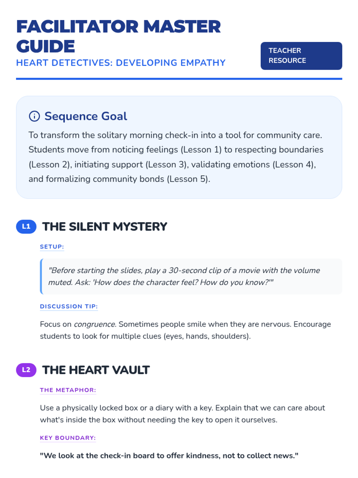 Students learn to observe non-verbal cues, respect privacy, offer support, and practice active listening to transform daily check-ins into a community-building tool. This sequence fosters empathy and a supportive classroom culture through practical social-emotional skills.