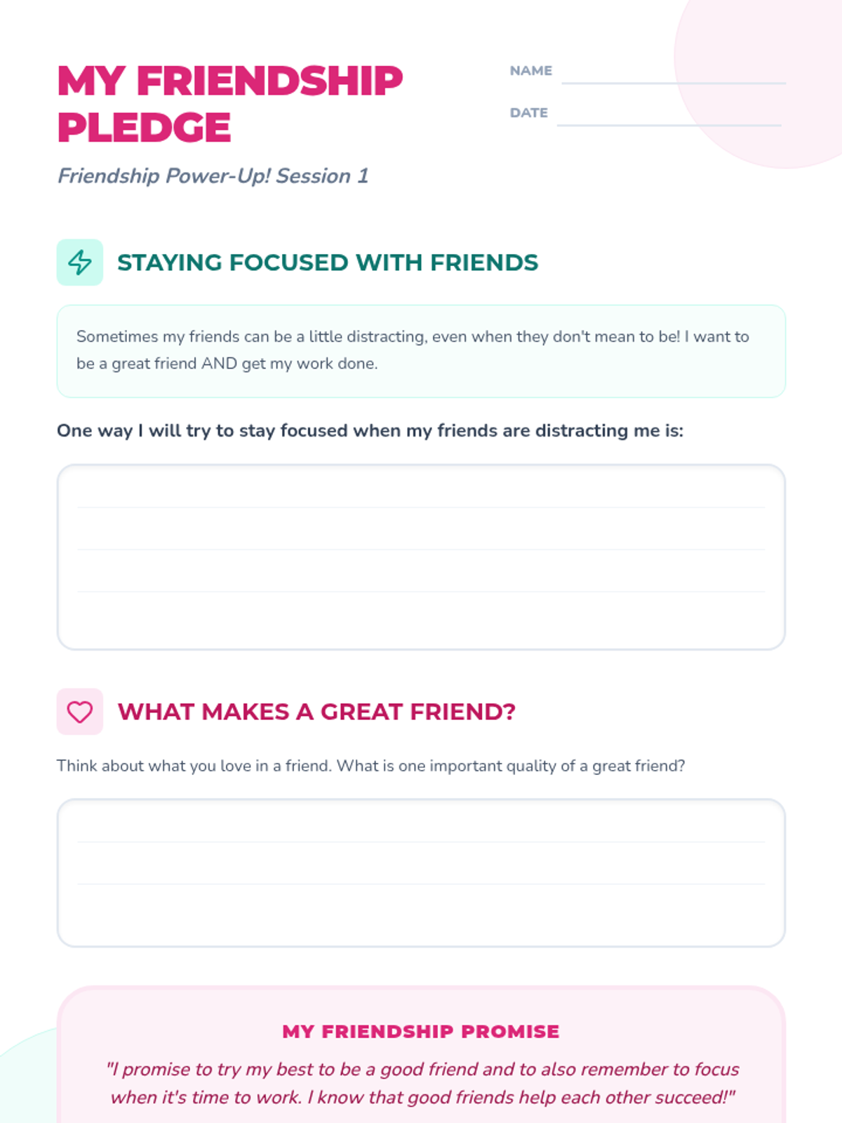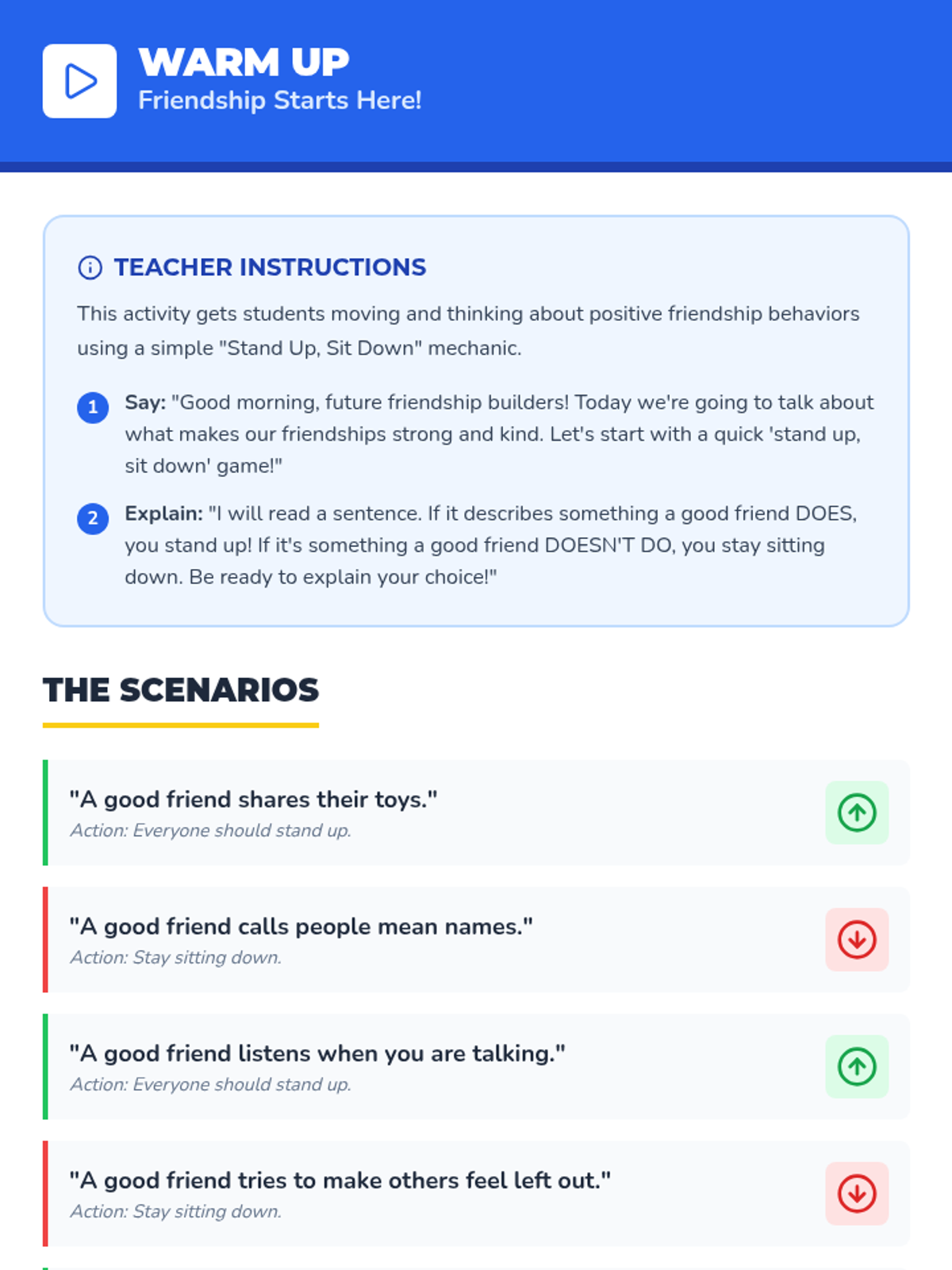 A 5-lesson unit where students become 'Friendship Detectives' to identify healthy and unhealthy relationship dynamics. Using case studies, sorting games, and creative projects, students learn to recognize green and red flags, distinguish between teasing and bullying, and resolve conflicts safely.