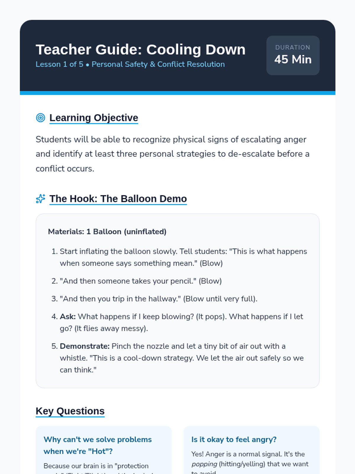 Students move from reactive emotional responses to proactive negotiation. They learn de-escalation, empathy through perspective-taking, and a structured 4-step 'Peace Path' to resolve playground and classroom conflicts independently.