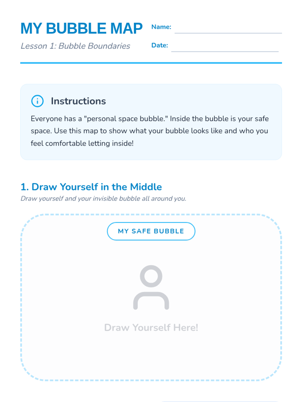 This sequence introduces students to the fundamental concepts of personal space and physical boundaries through interactive movement and role-playing activities. Students learn to define their personal space, practice asking for consent, and develop assertive communication skills to maintain their safety and respect the boundaries of others.