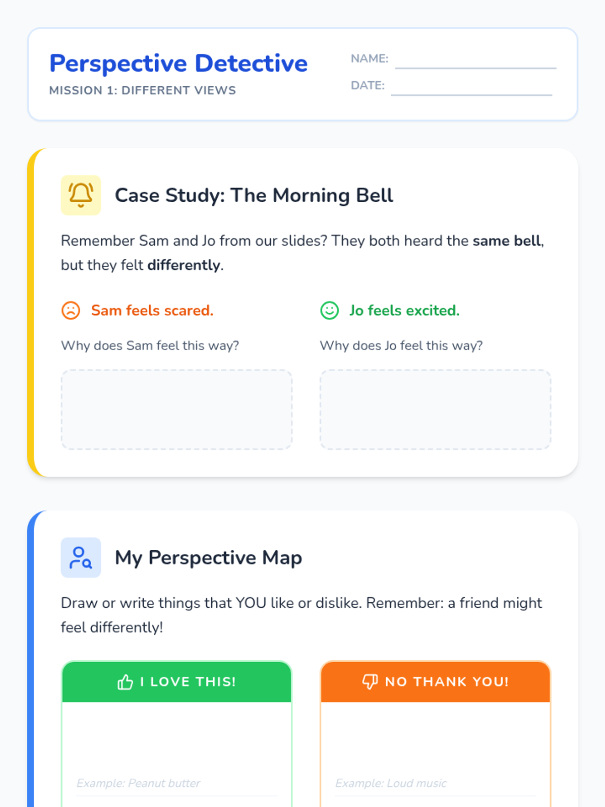 A project-based sequence for 2nd graders focusing on empathy and conflict resolution. Students learn to see multiple perspectives, analyze conflicts, and design tangible 'Peace Tools' like a Peace Path or Peace Corner for their classroom community.