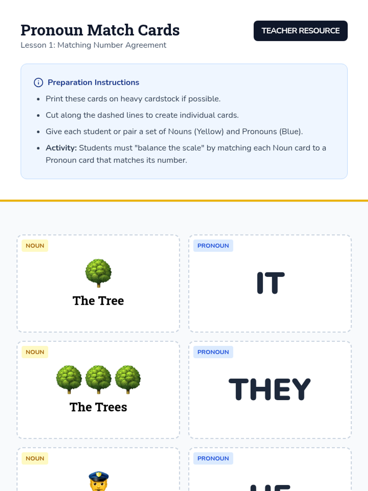 A comprehensive 2nd-grade sequence focusing on subject-verb agreement. Students learn to balance singular and plural subjects with their corresponding verb forms using the 'S-Rule' through workshops, editing tasks, and creative writing projects.