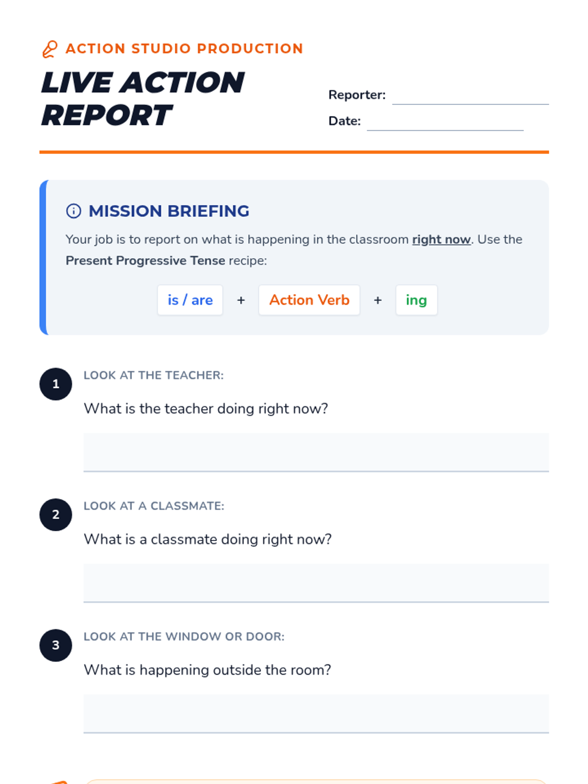 A writing-focused sequence for 2nd graders that introduces present and past progressive verb tenses through observation, spelling mastery, and descriptive narrative writing. Students learn to capture ongoing actions to create immersive, dynamic stories.