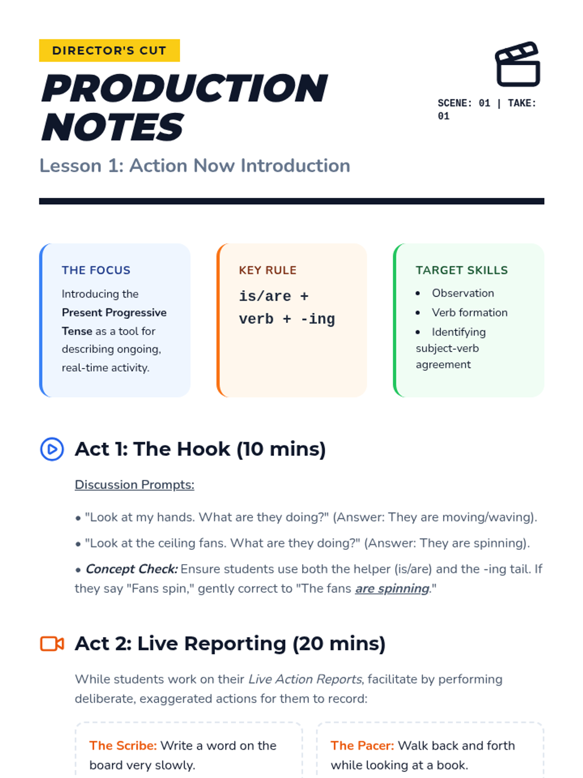 This 5-lesson sequence transforms 2nd-grade students into 'Action Agents' as they master the power of verbs. Students progress from physical identification to grammatical precision, exploring subject-verb agreement, simple tenses, and shades of meaning to construct descriptive and accurate sentences.