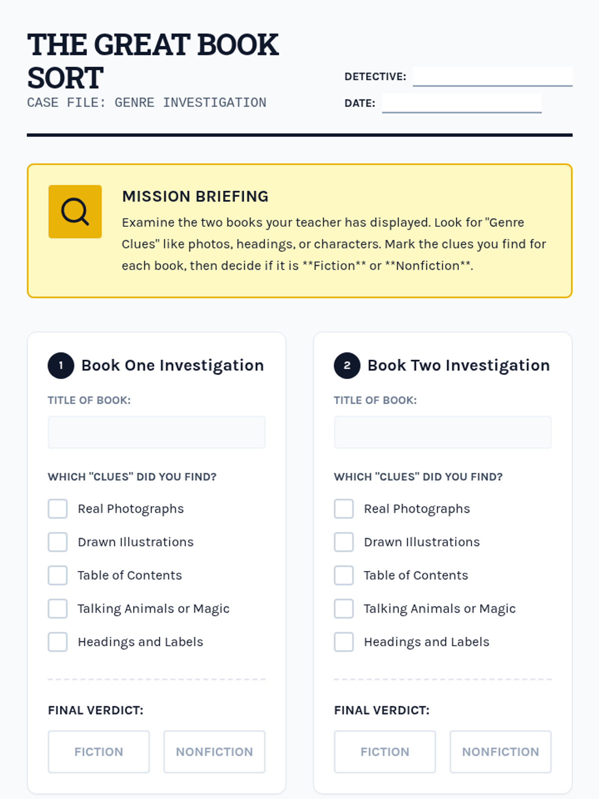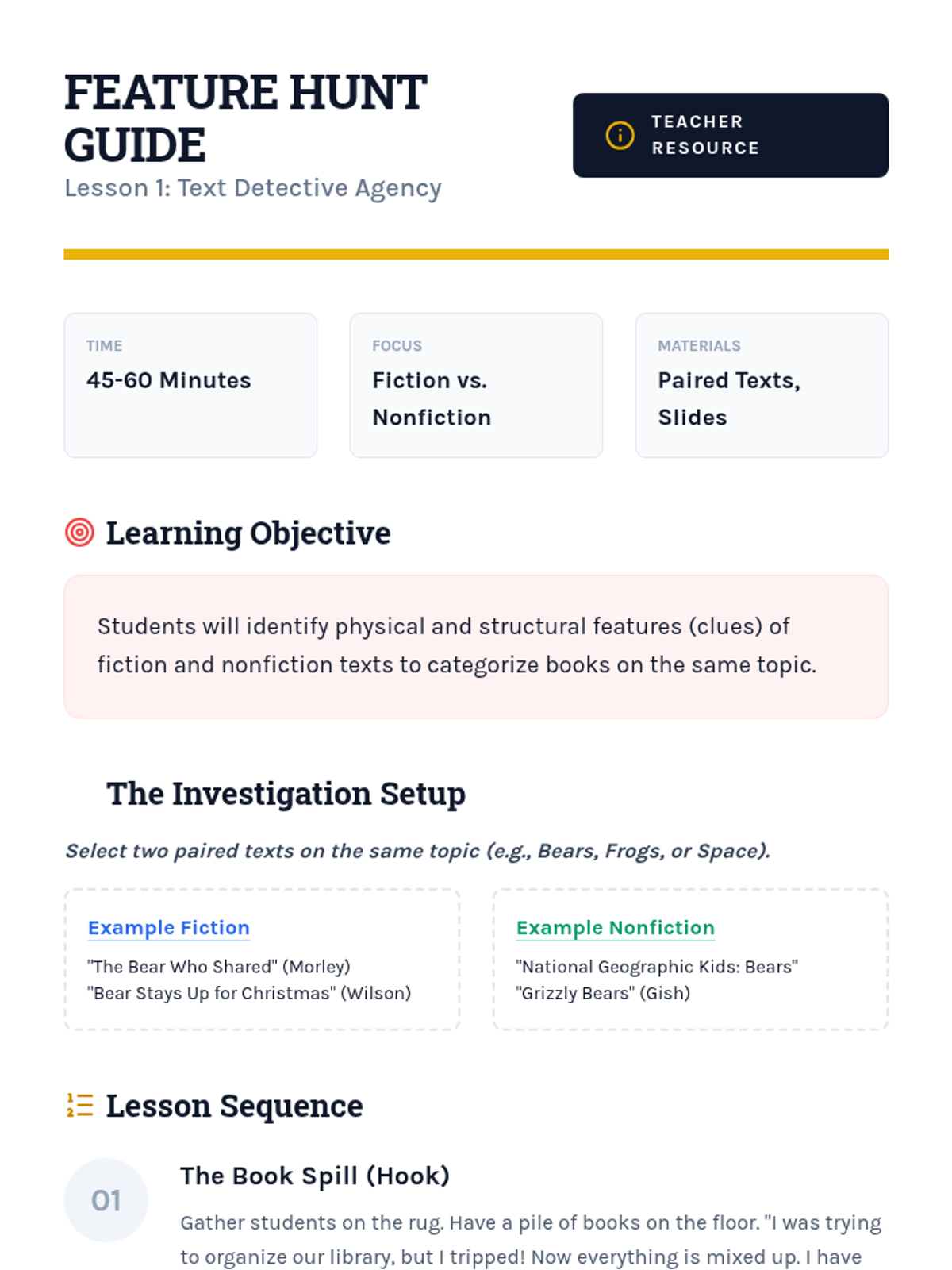 Nonfiction Book StudyAnalysis of text features, main ideas, and supporting details in informational texts. Develops critical thinking through evidence-based questioning and summary skills.