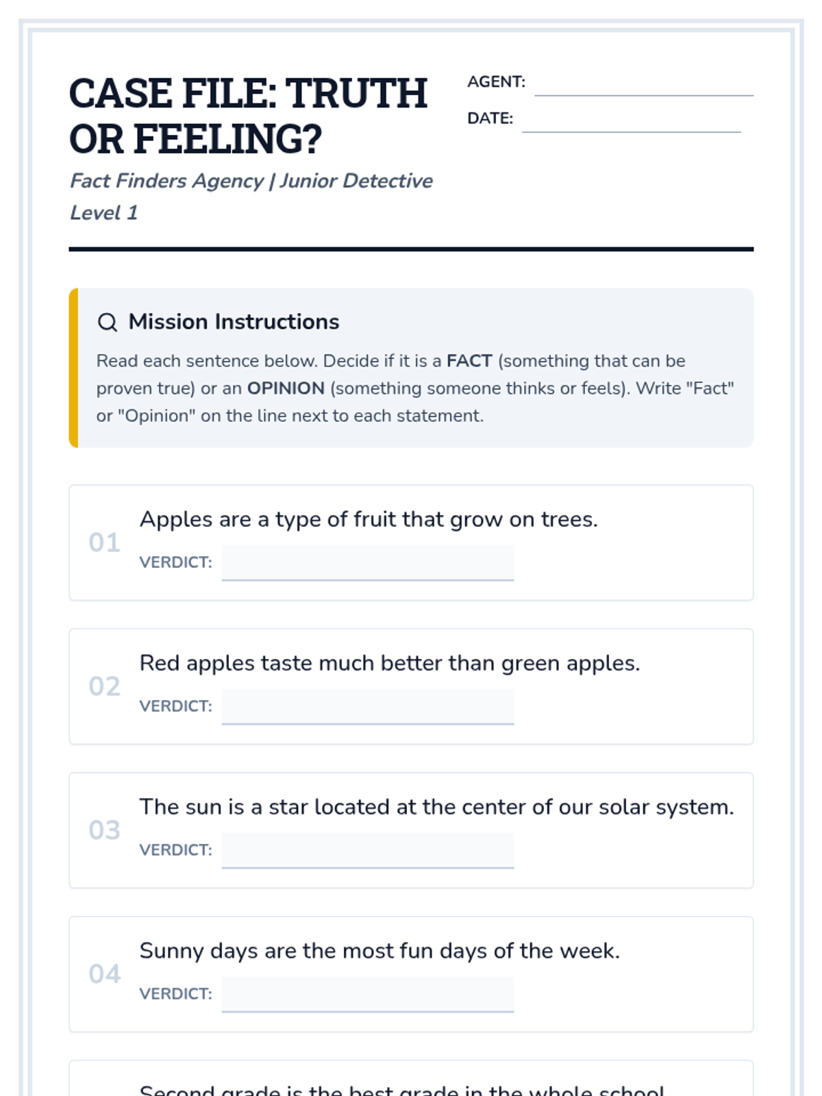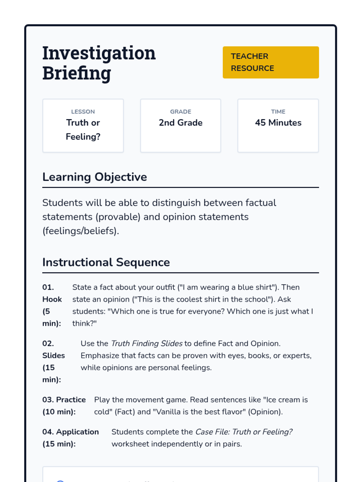 Reality vs. FictionCriteria for distinguishing factual events from imaginative narratives in literature and media. Strengthens critical thinking through analysis of historical accuracy, character archetypes, and narrative structures.