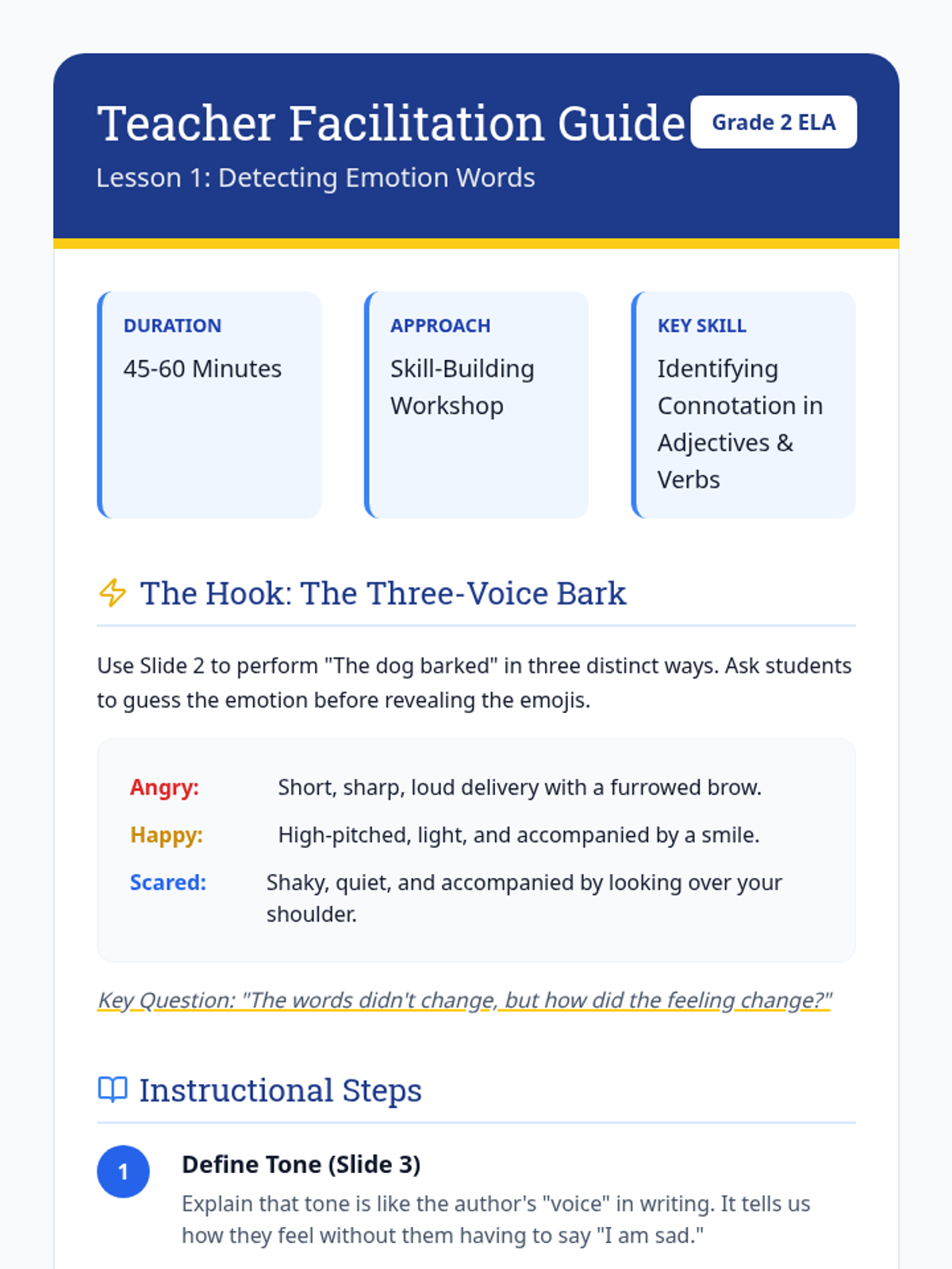 A 2nd-grade sequence focusing on developing oral reading fluency and prosody using audio-narrated literary texts. Students progress from listening for emotion to recording their own expressive readings, bridging the gap between decoding and comprehension.