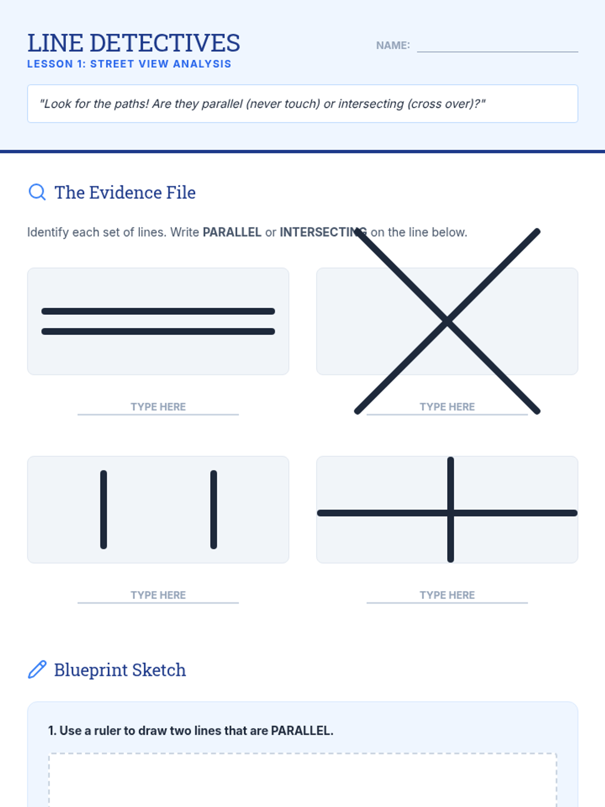 A comprehensive geometry sequence for 2nd grade where students move from identifying shapes to constructing complex figures based on specific attribute descriptions. The unit culminates in a 'Geometric City' design project.