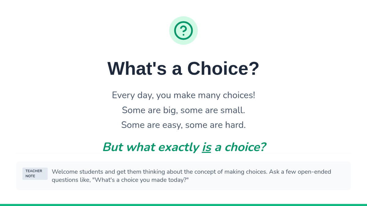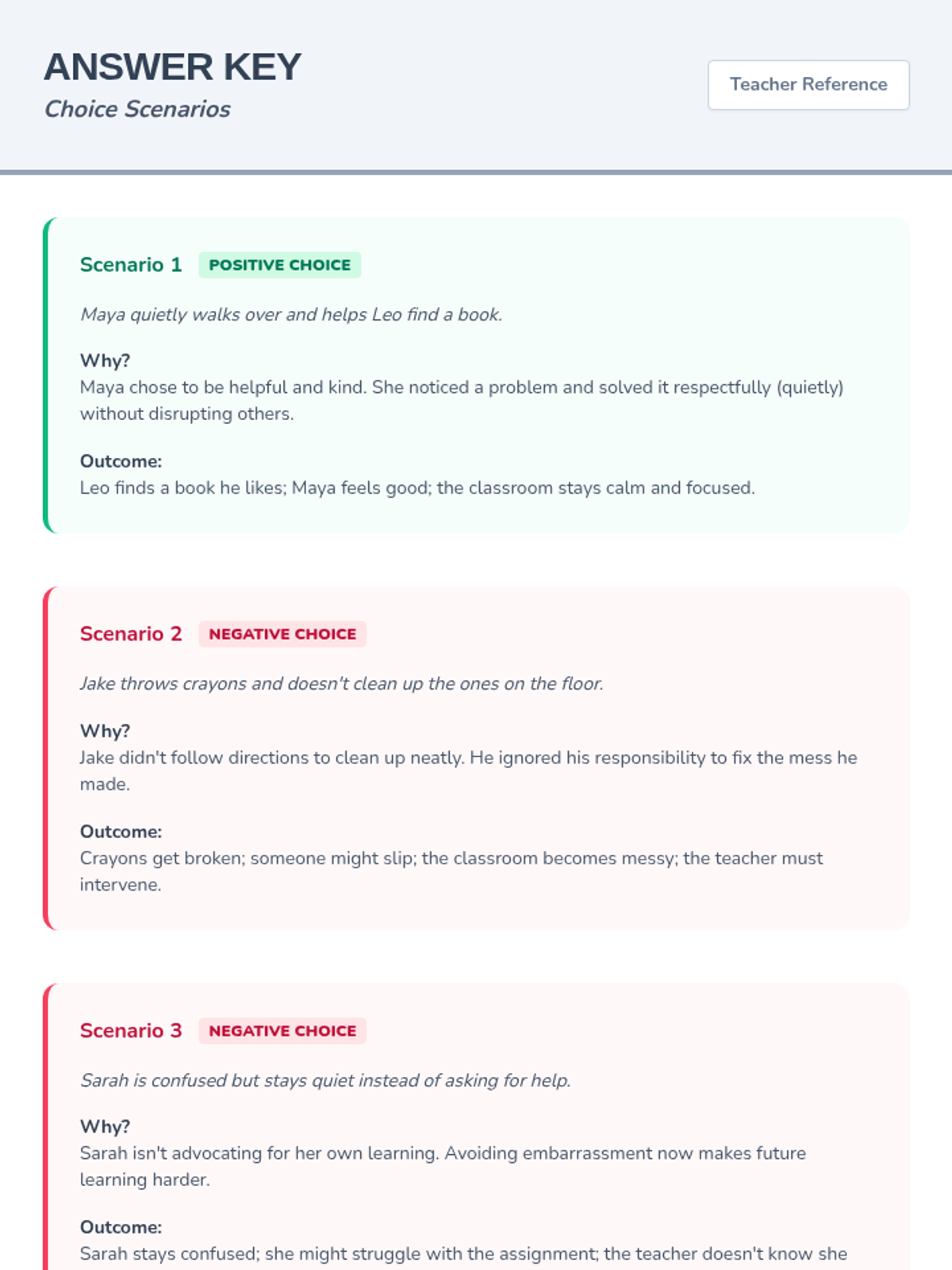 A focused instructional sequence designed to help students develop emotional reasoning and verbal problem-solving skills. Students learn to distinguish between problems and non-problems, choose appropriate verbal solutions, and practice calming strategies.