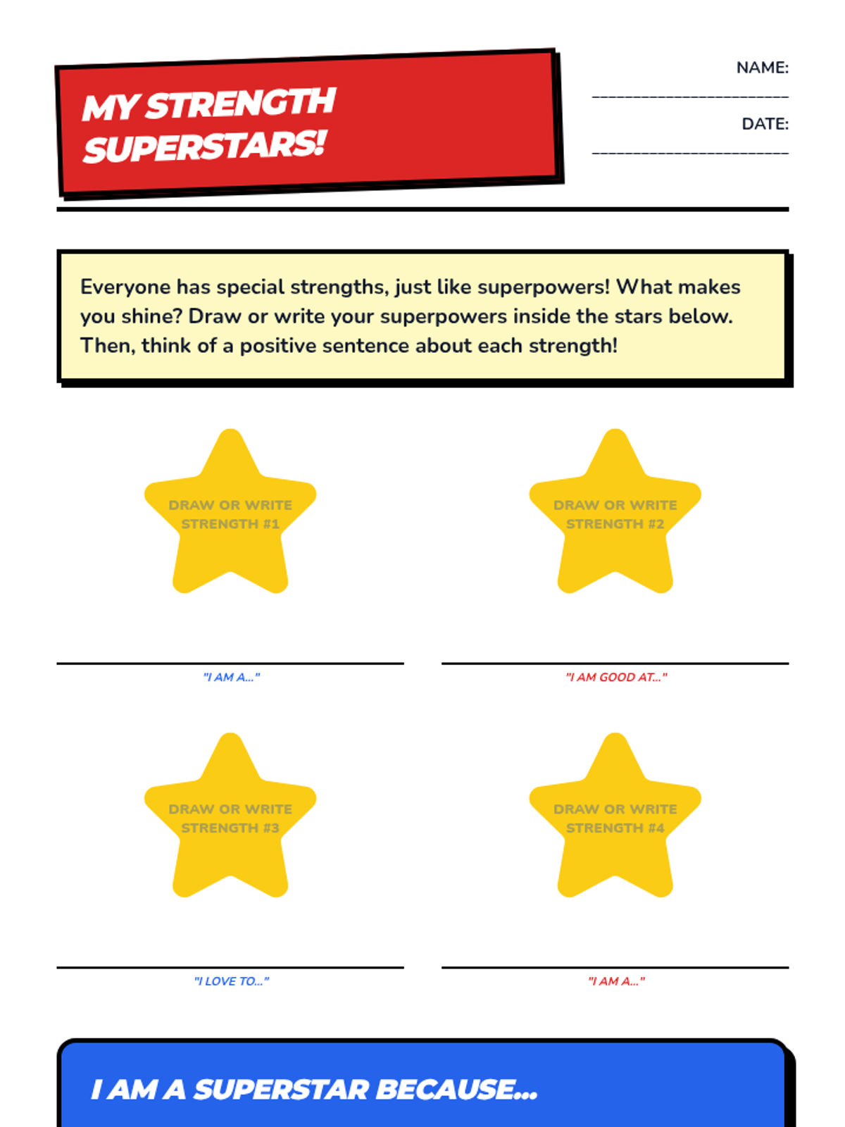 A 6-week individualized Tier 3 intervention for a 9-year-old student focused on emotional identification, trigger awareness, and coping strategies. Students build a "Superpower Toolbox" to manage shutdowns, meltdowns, and avoidance behaviors.