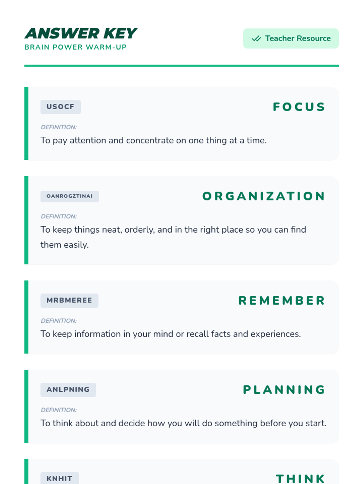 A comprehensive 10-week instructional module designed to build and refine 9 core executive functioning skills including goal setting, organization, and self-regulation.