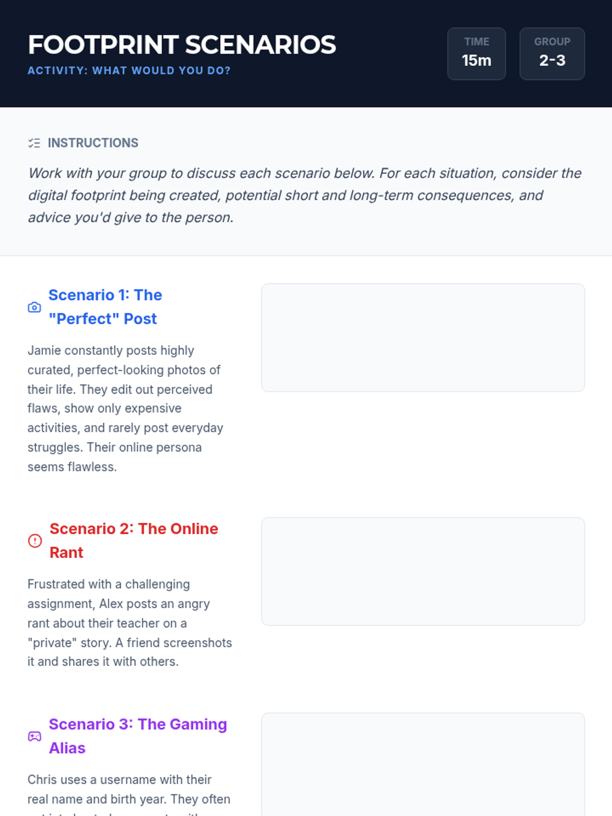 A 5-lesson unit for 3rd graders on understanding that their online actions leave a permanent, searchable trail. Students learn through analogies like wet cement and toothpaste, eventually becoming 'Digital Detectives' who can audit profiles and curate positive reputations.