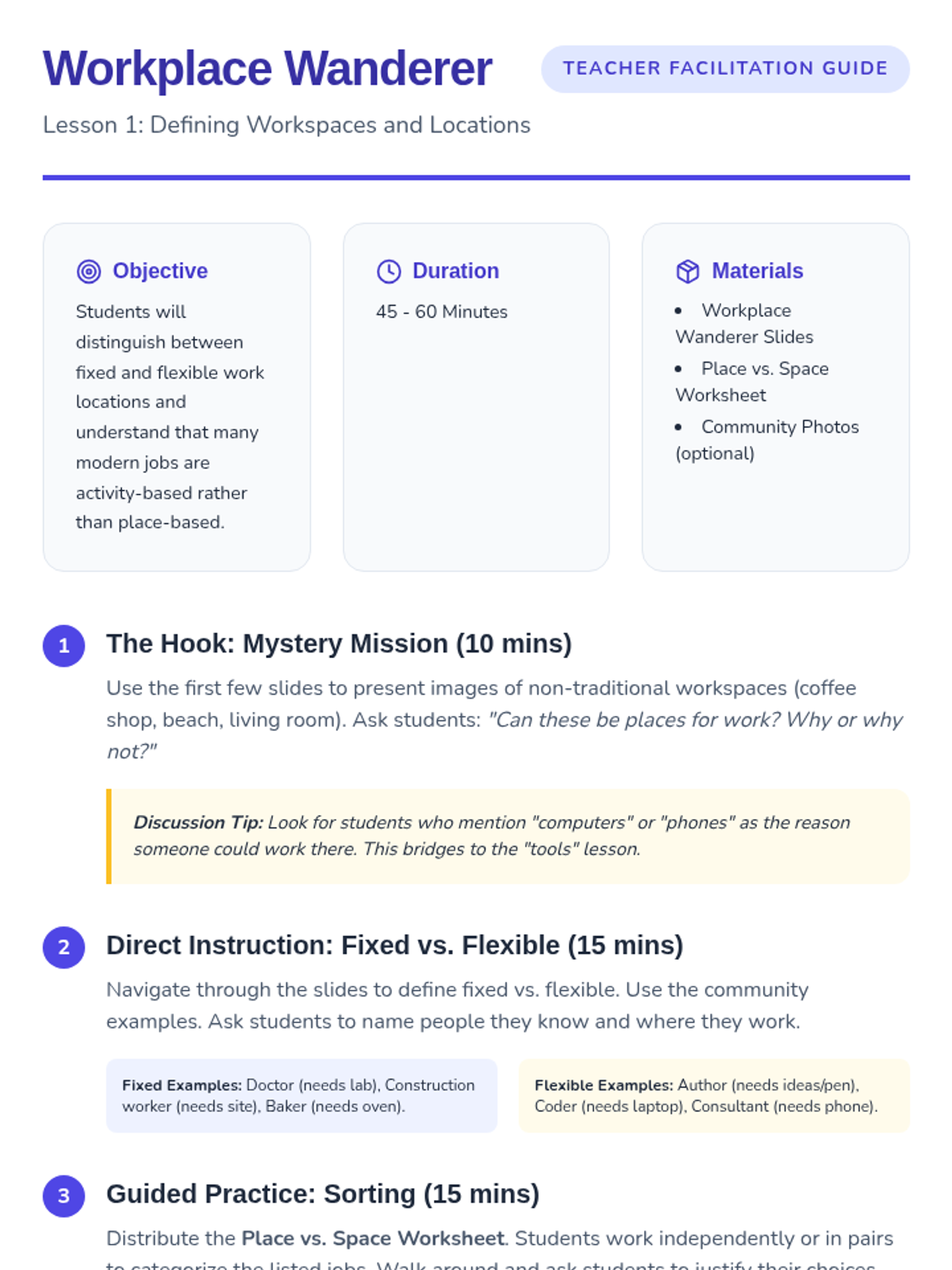 This project-based sequence explores the concept of remote work and the digital workplace, helping 3rd-grade students understand that work is an activity, not just a place. Students investigate the requirements for working from home versus an office, design their own productive workspaces, and explore how digital tools allow for global collaboration.