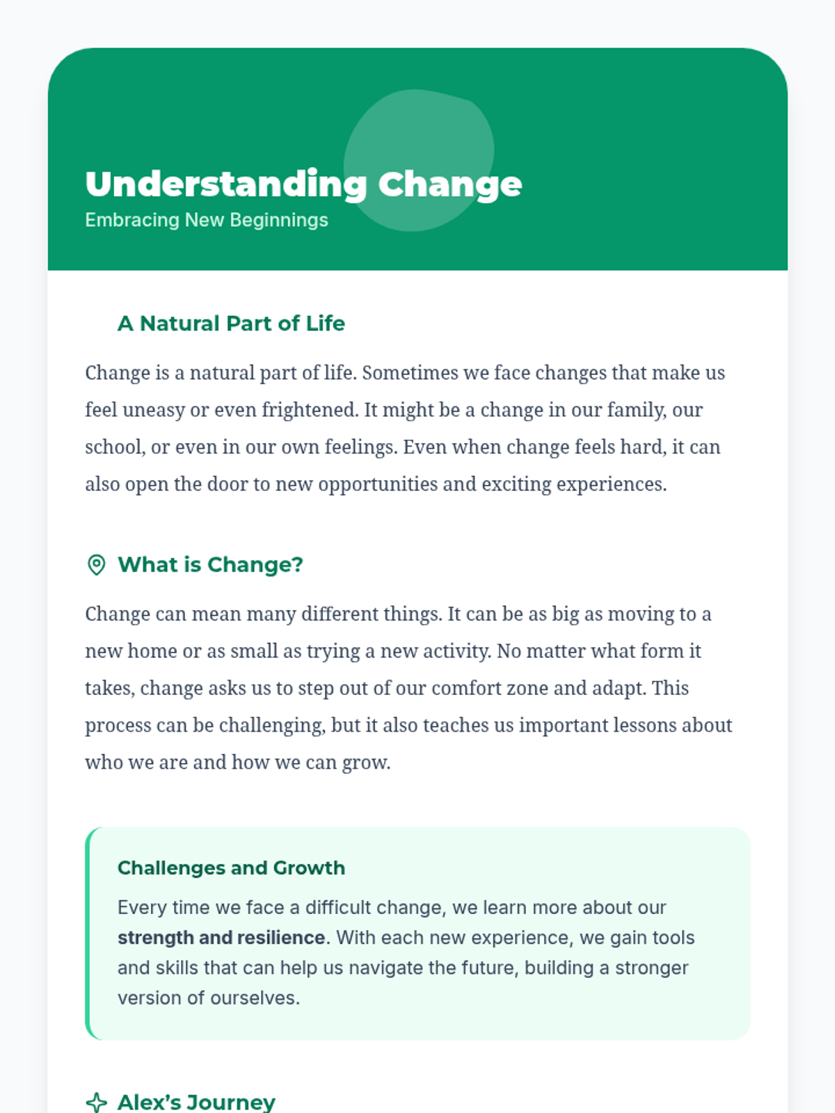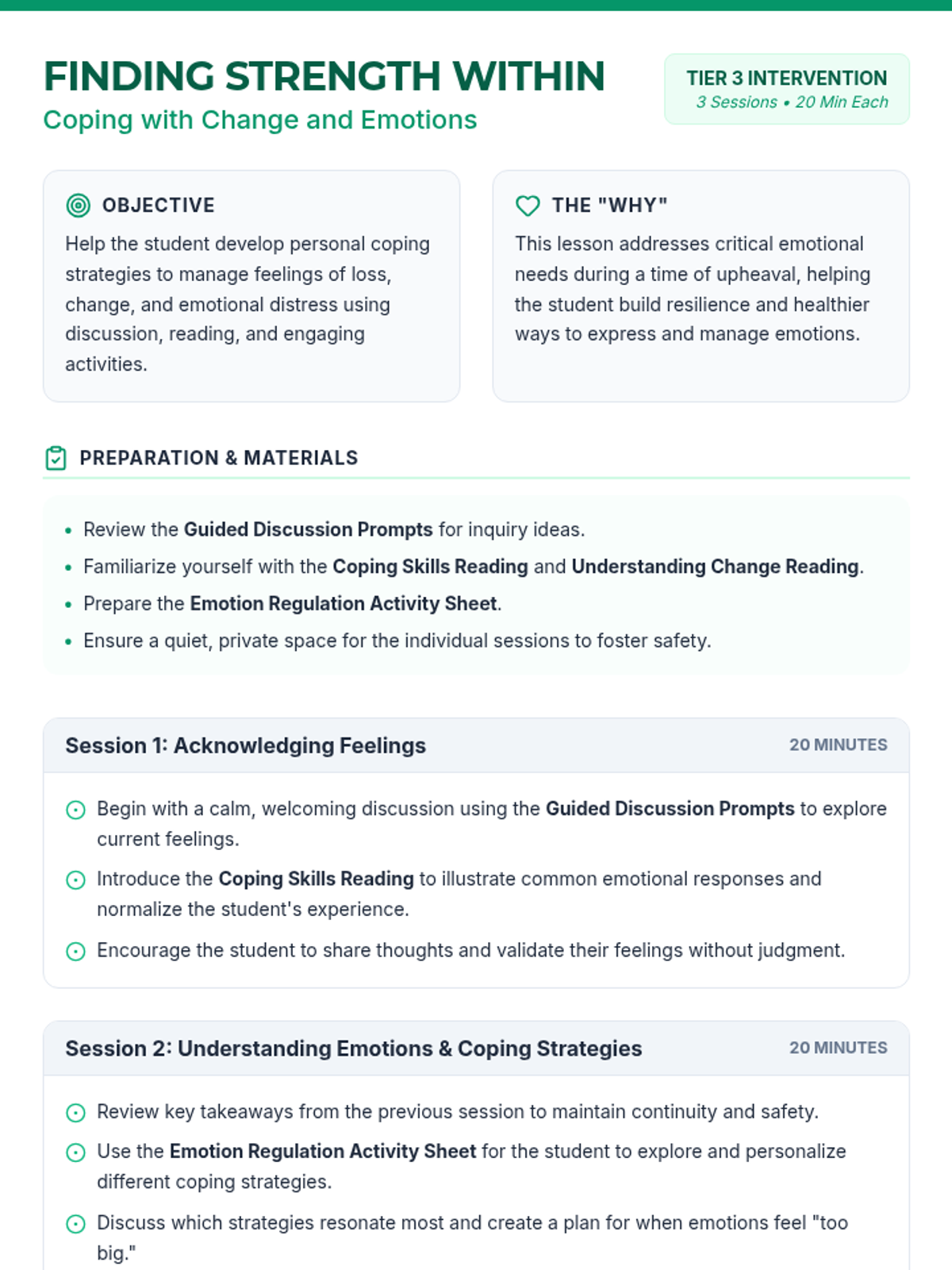 A comprehensive counseling series designed to support students through grief, loss, and significant life changes, providing age-appropriate tools for emotional processing and resilience.
