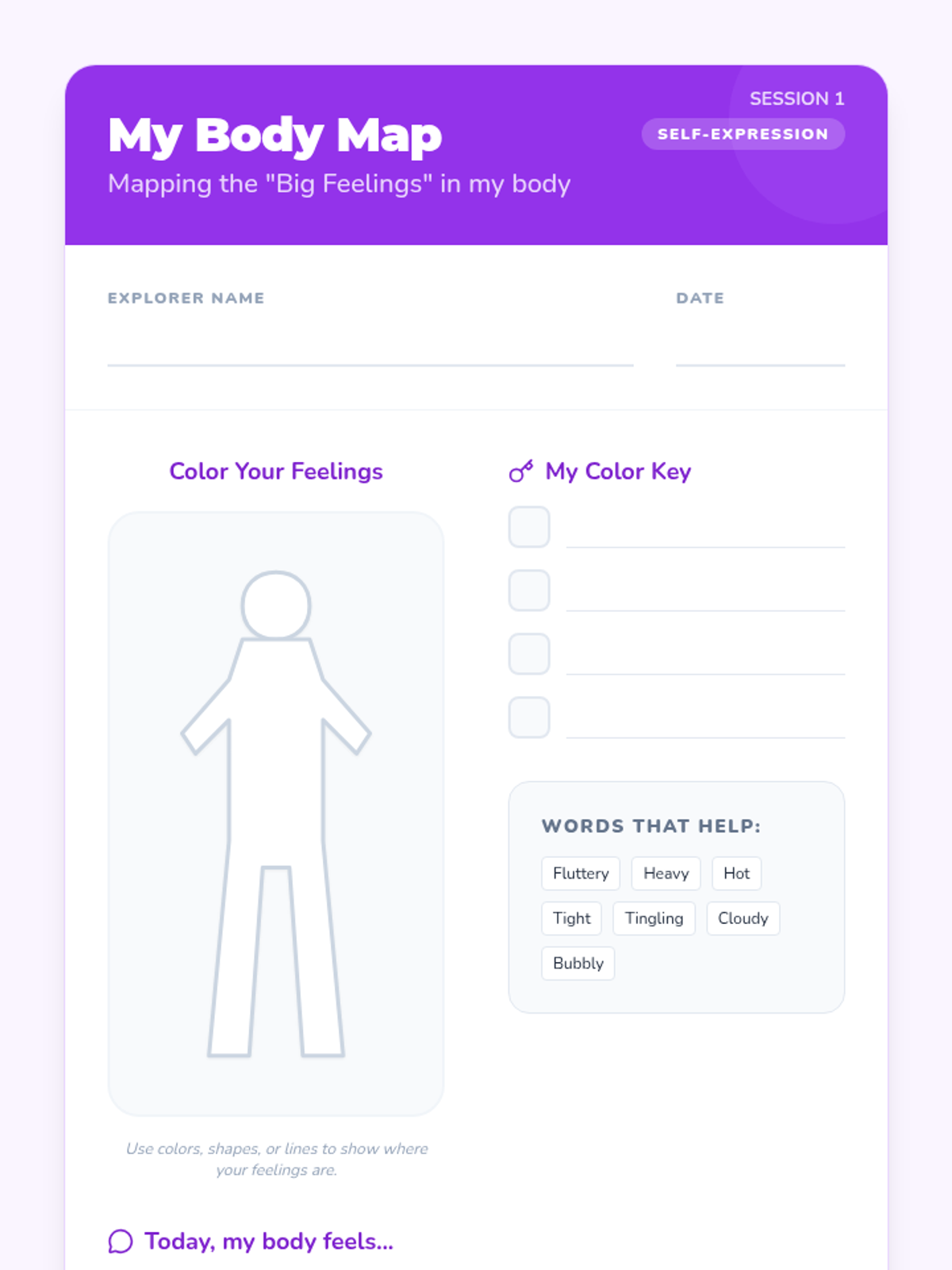 A 6-week therapeutic group sequence for 3rd graders navigating parental separation or a parent leaving the home. The program uses 'The Home Mosaic' theme to focus on self-expression, emotional literacy, and coping through play-based activities.