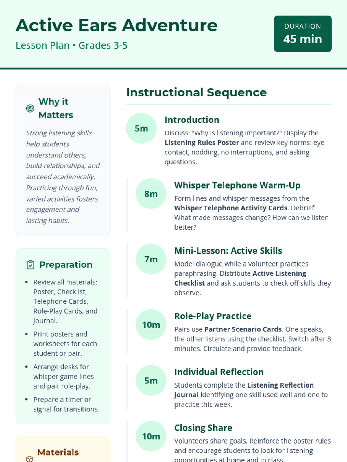 A comprehensive Social-Emotional Learning unit designed to help students navigate complex emotions and relationships through the lens of a 'Heart Post Office.' Students learn to 'send and receive' empathy, resolve conflicts, navigate grief, and build lasting friendships.
