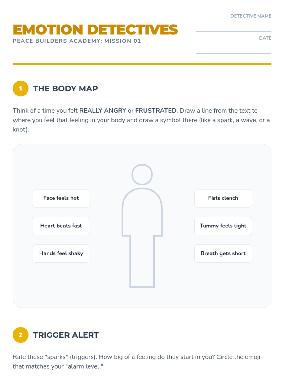 A two-session social-emotional learning unit designed to help students identify body signals associated with various emotions, aligned with IEP goals for self-regulation and emotional awareness.