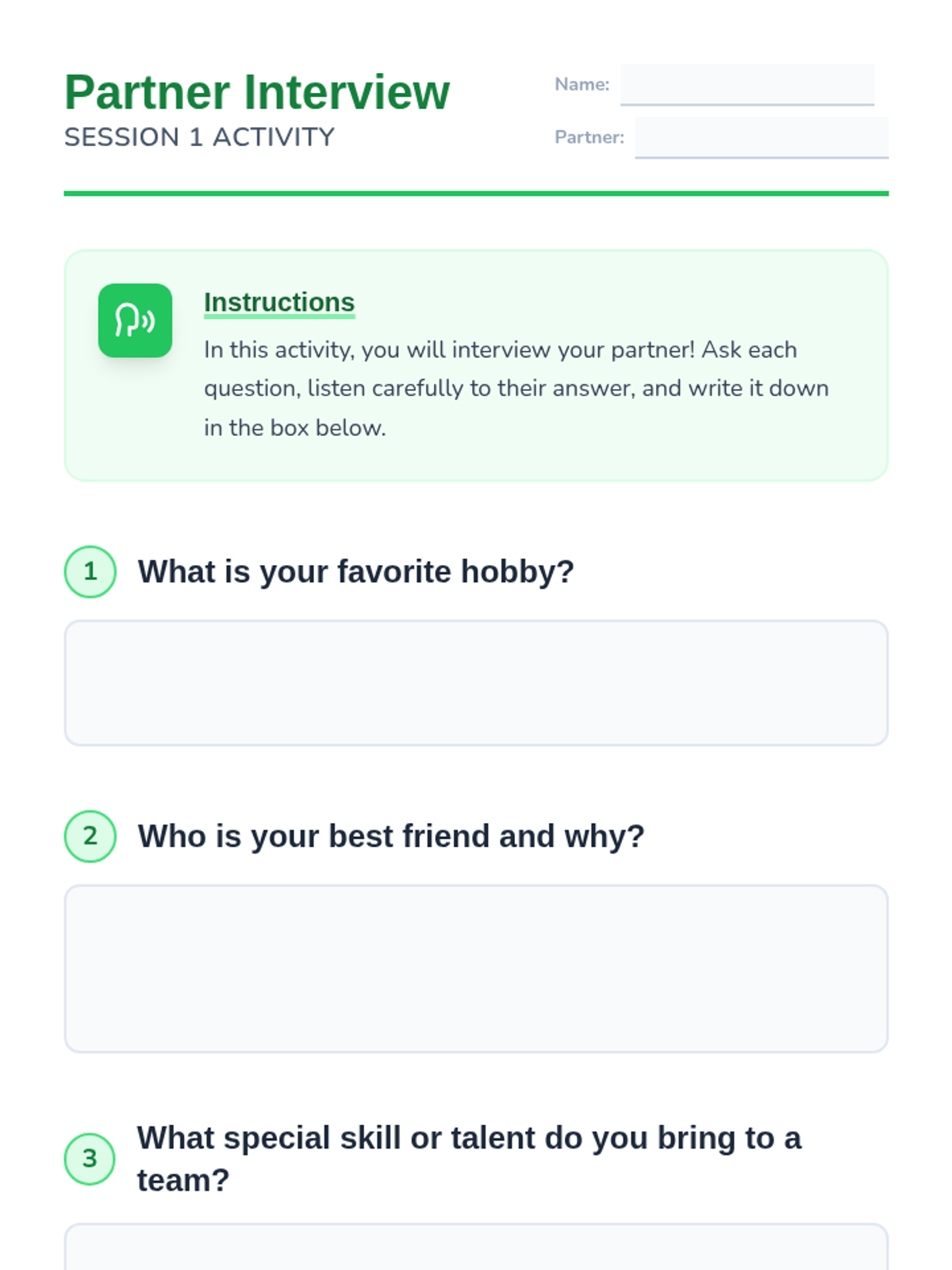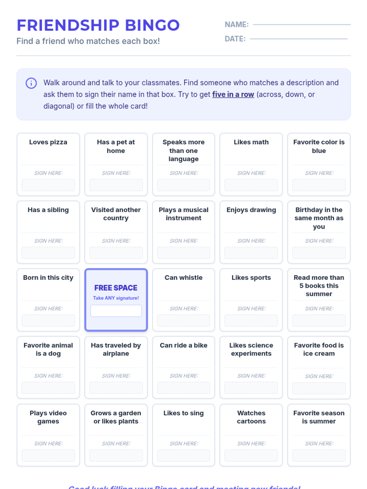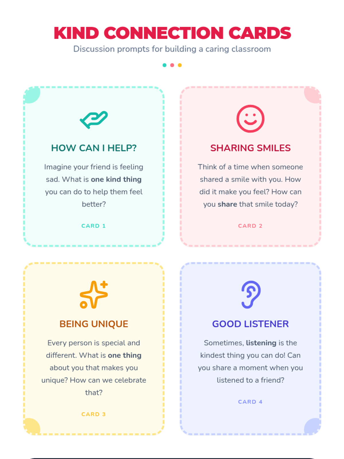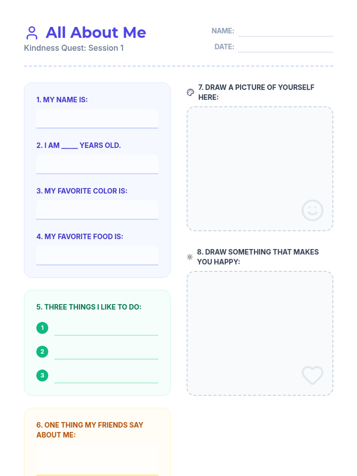 A 3-session unit for 3rd graders designed to build belonging and inclusion through interactive icebreakers, collaborative norm-setting, and personal storytelling. students will connect through shared interests, establish community standards, and celebrate their unique strengths.