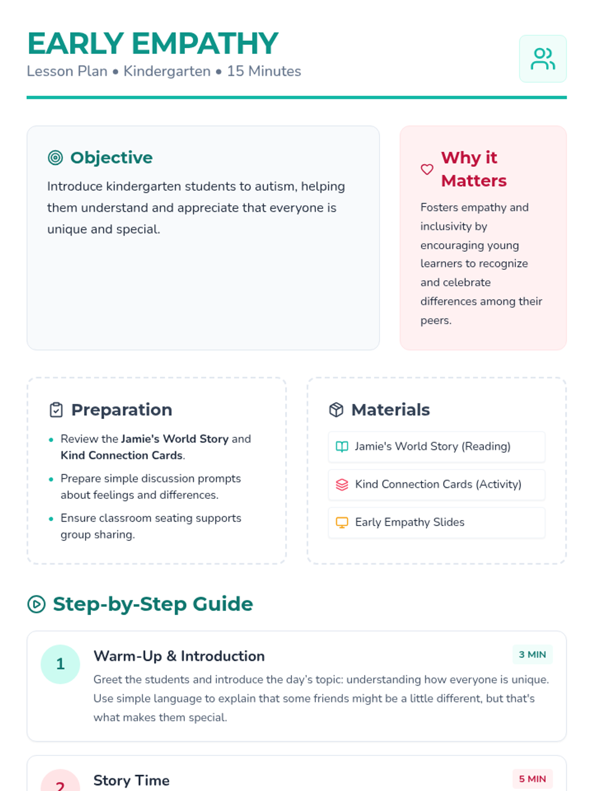 A sequence focused on fostering empathy and autism awareness across elementary grades, helping students appreciate the unique ways their peers experience the world.