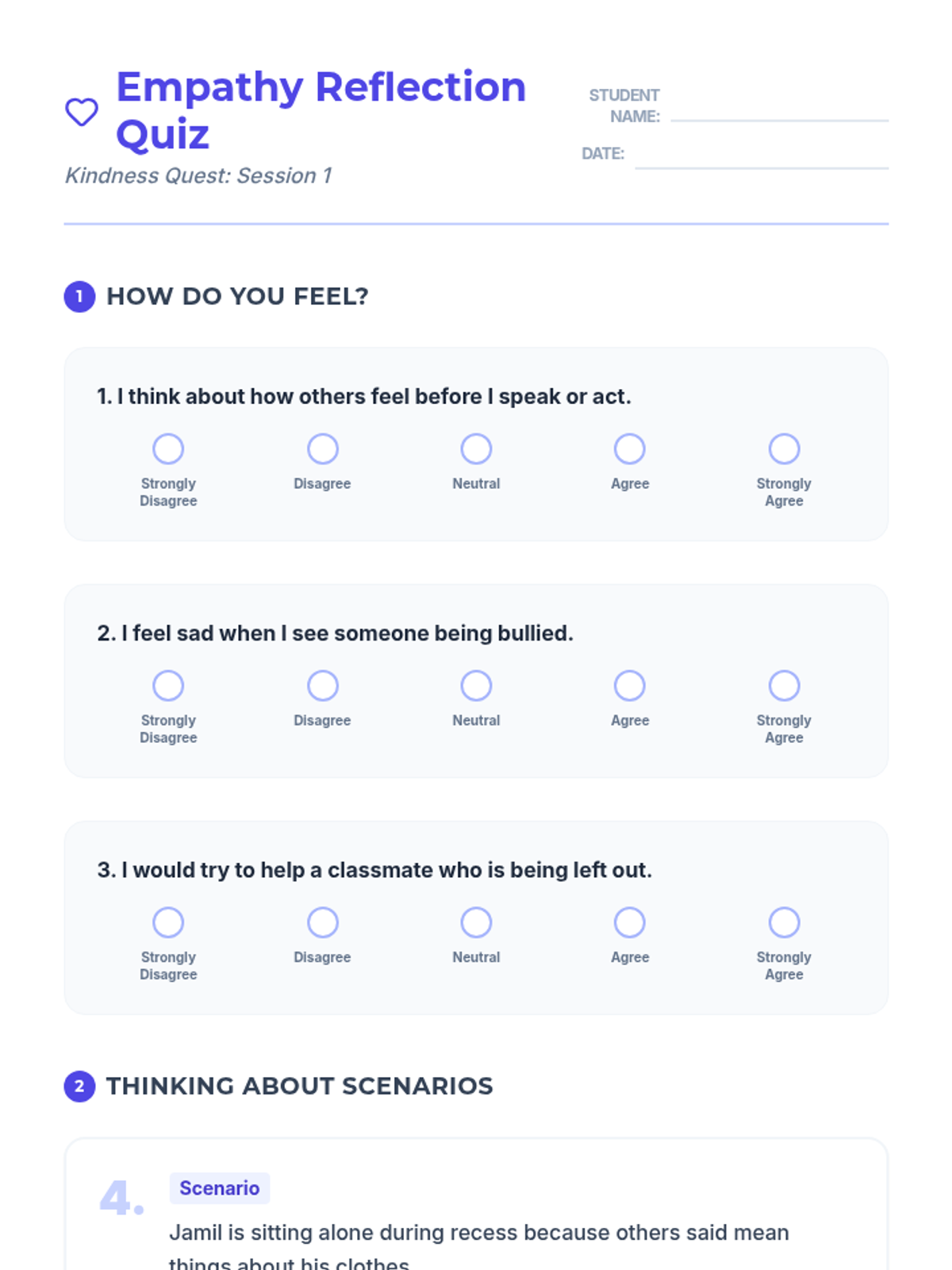 A comprehensive mini-unit designed for primary students to build social-emotional skills through the lens of empathy. Students progress from identifying emotions to practicing active listening and celebrating diversity in their community.