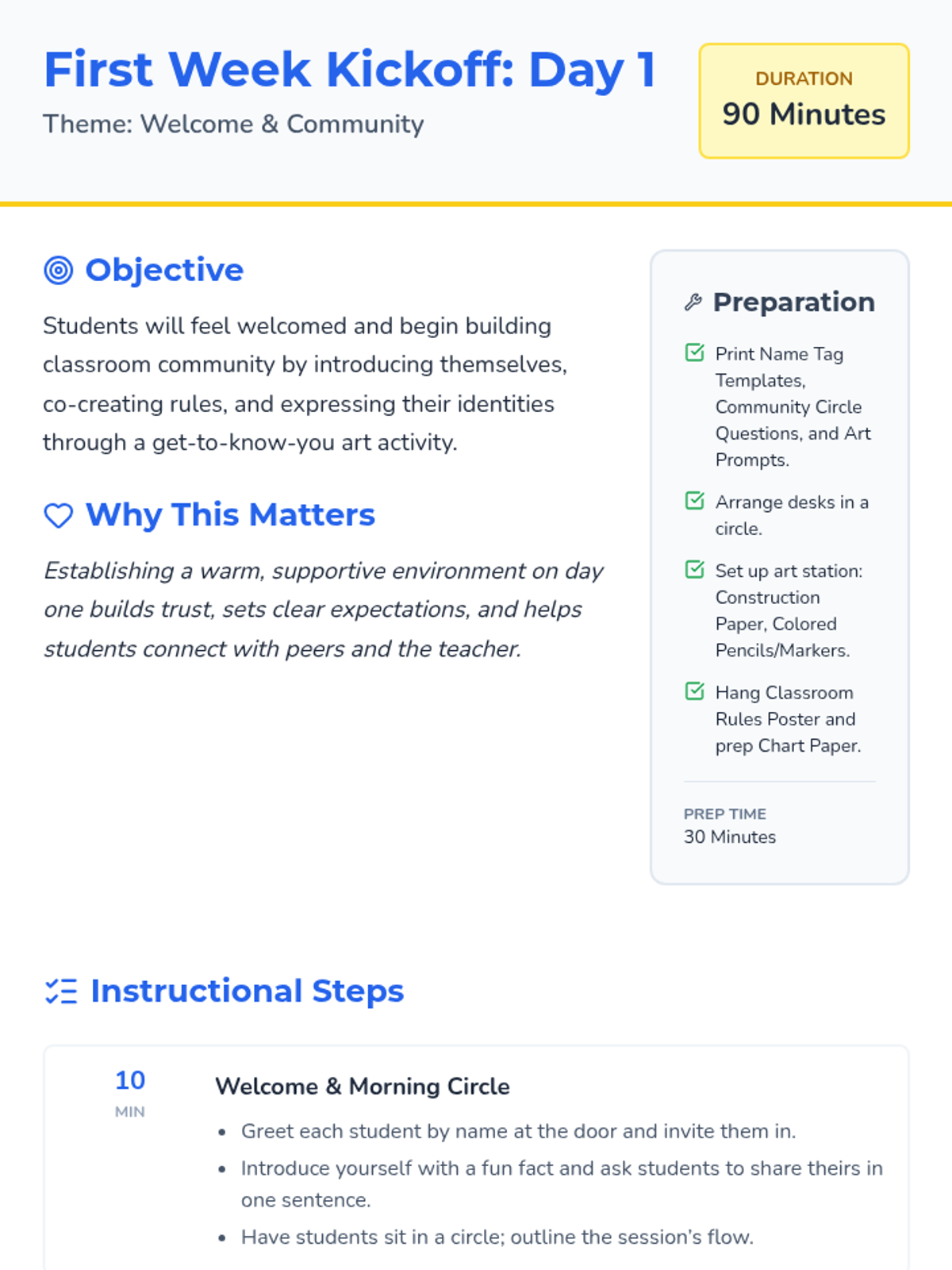 A three-day introductory unit for 3rd graders that builds community, sets expectations, and engages students in art, math, and reading activities. This sequence ensures a warm welcome and establishes key classroom routines.