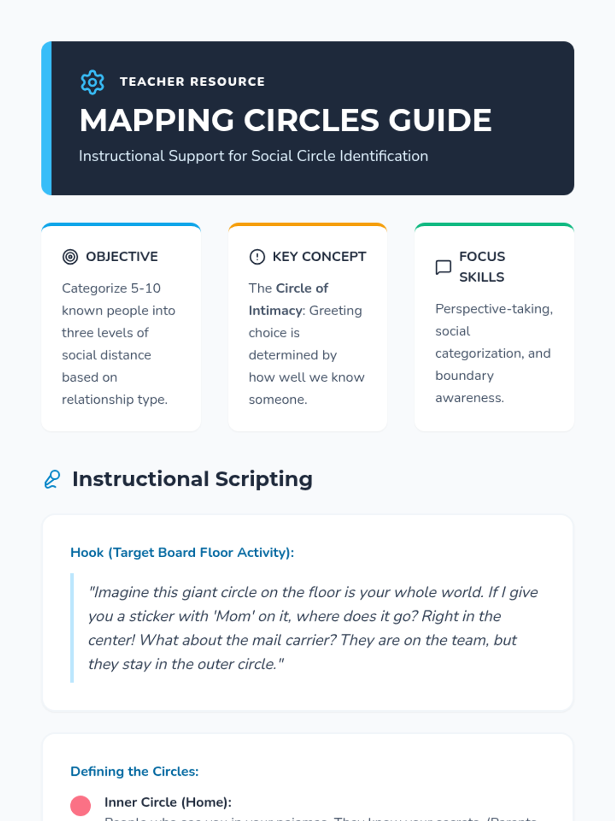 A project-based sequence for 3rd-grade social communication where students build a 'Social Passport' to navigate different social circles with appropriate greetings and body language.