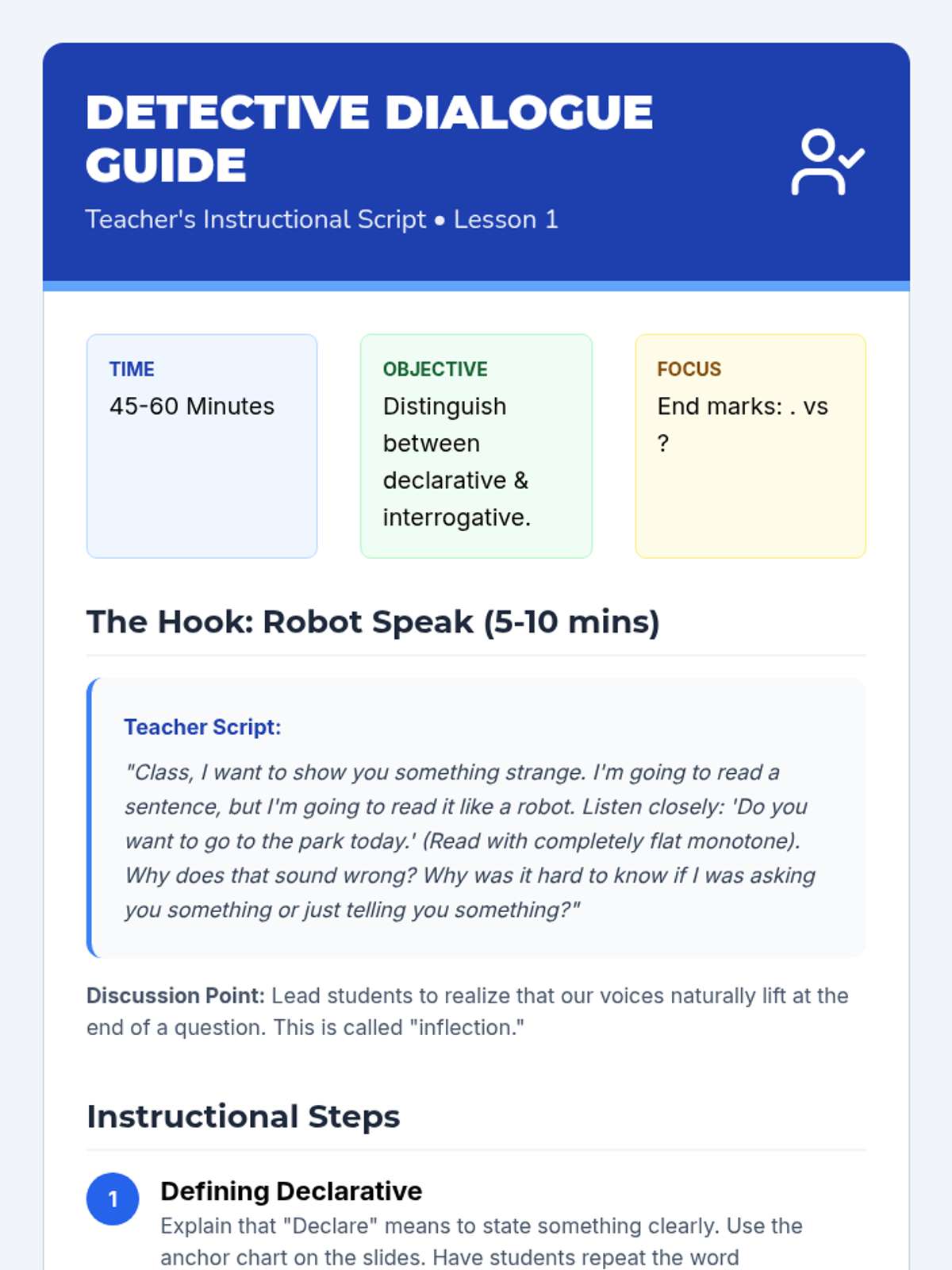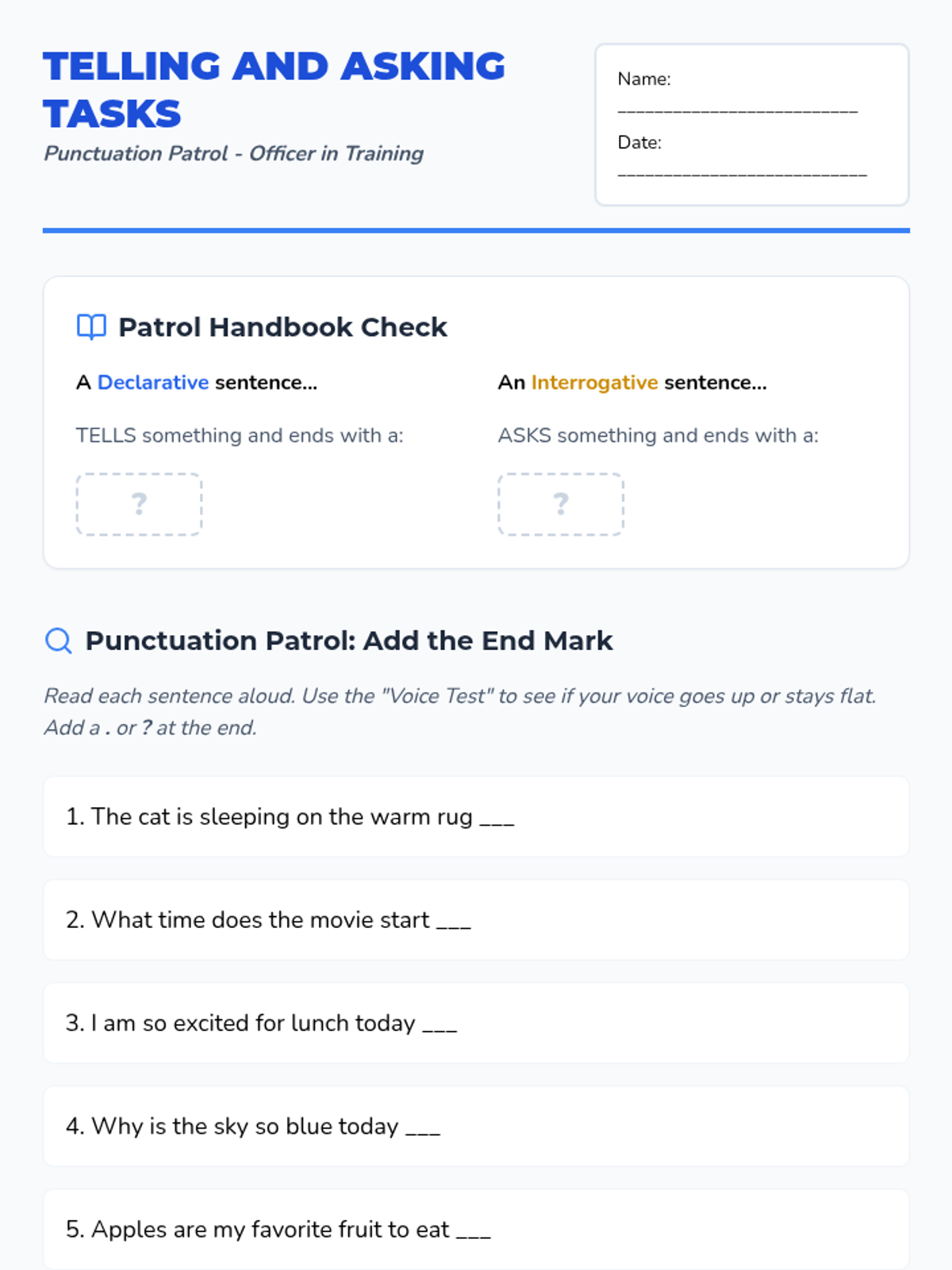 A 3rd-grade grammar sequence focusing on the indicative, interrogative, and imperative moods. Students become 'Voice Scientists' in a lab setting, experimenting with how verb placement and punctuation change the intent of a sentence.