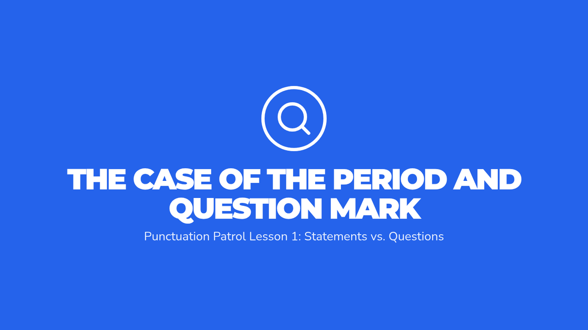 A 5-lesson sequence for 3rd grade students focusing on sentence types (declarative, interrogative, imperative, exclamatory), fixing run-ons and fragments, and applying correct end punctuation in creative writing. Students become 'Punctuation Patrol' officers to master the art of the stop sign.