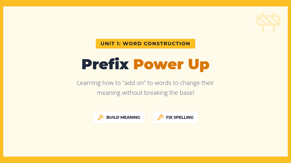A 5-day intensive focus on common prefixes (re-, un-, pre-) and suffixes (-ly, -y) through daily interactive review slides, movement-based games, and lab-themed practice activities.