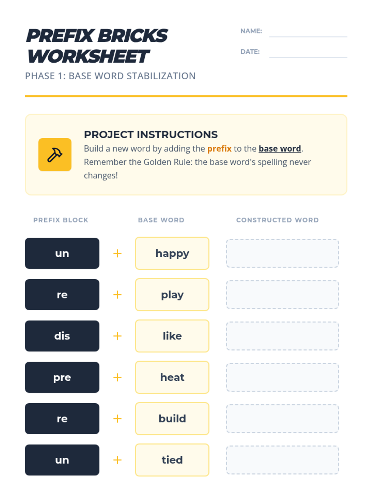 A comprehensive 3rd Grade spelling sequence focused on structural analysis. Students learn to build and deconstruct words using prefixes, suffixes, roots, and compound word strategies to improve spelling accuracy and vocabulary depth.