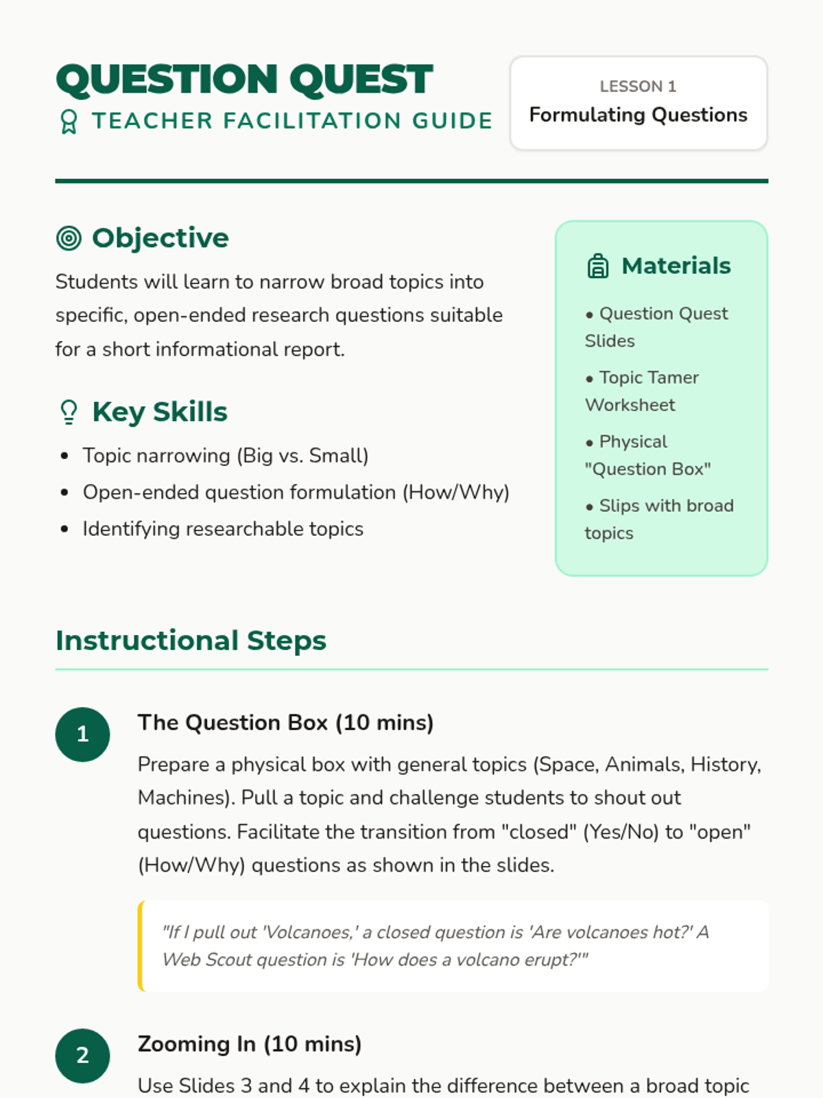 Question Quest Teacher Guide