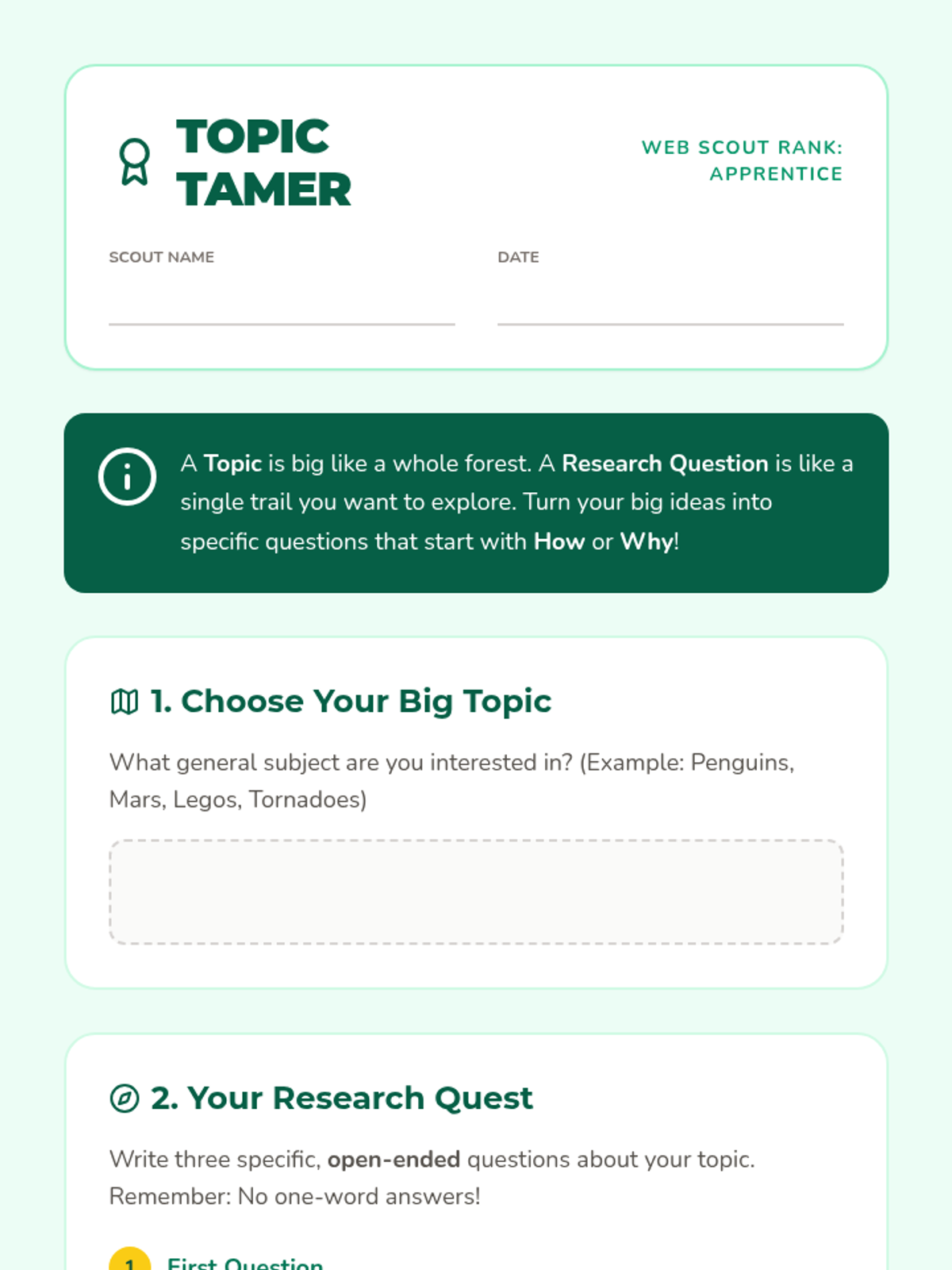 Topic Tamer Worksheet
