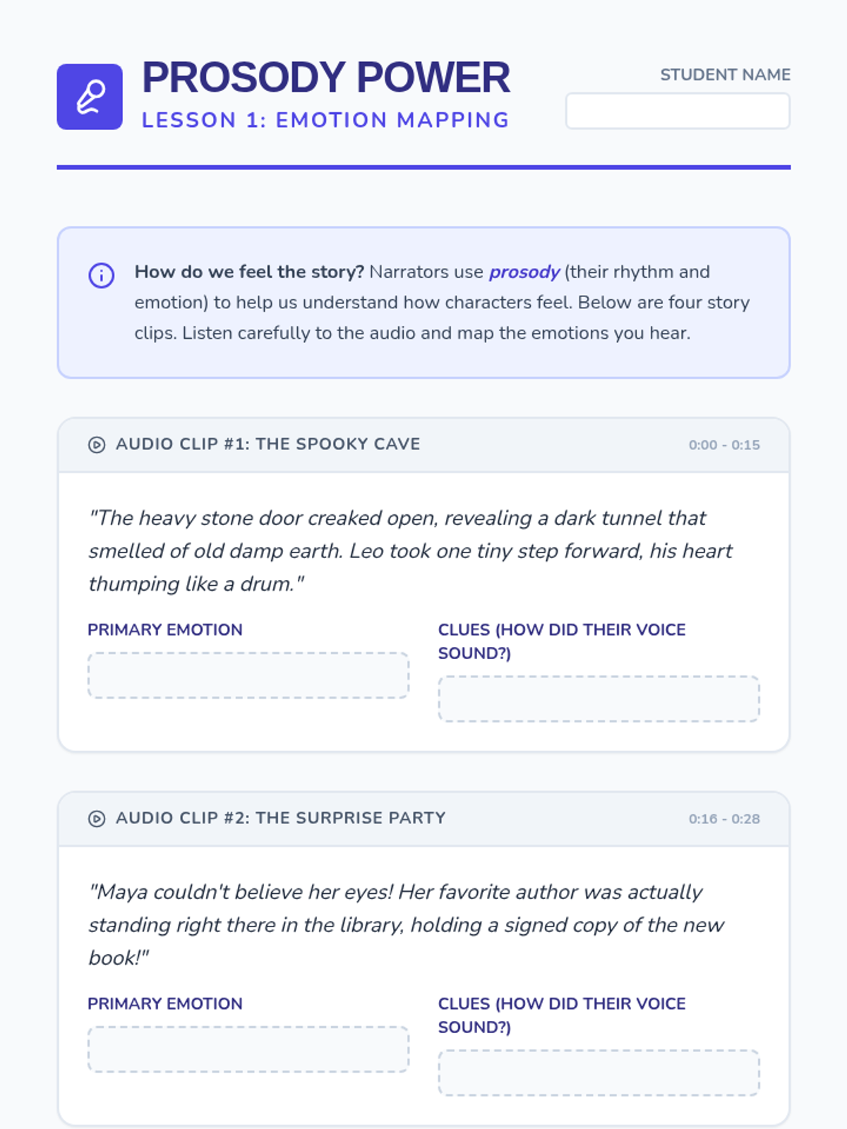 This sequence uses read-along technology to help 3rd graders bridge the gap between word recognition and expressive reading. Students analyze how narrators use pacing, tone, and pitch, practicing 'shadow reading' to internalize proper phrasing before producing their own recorded narrations.