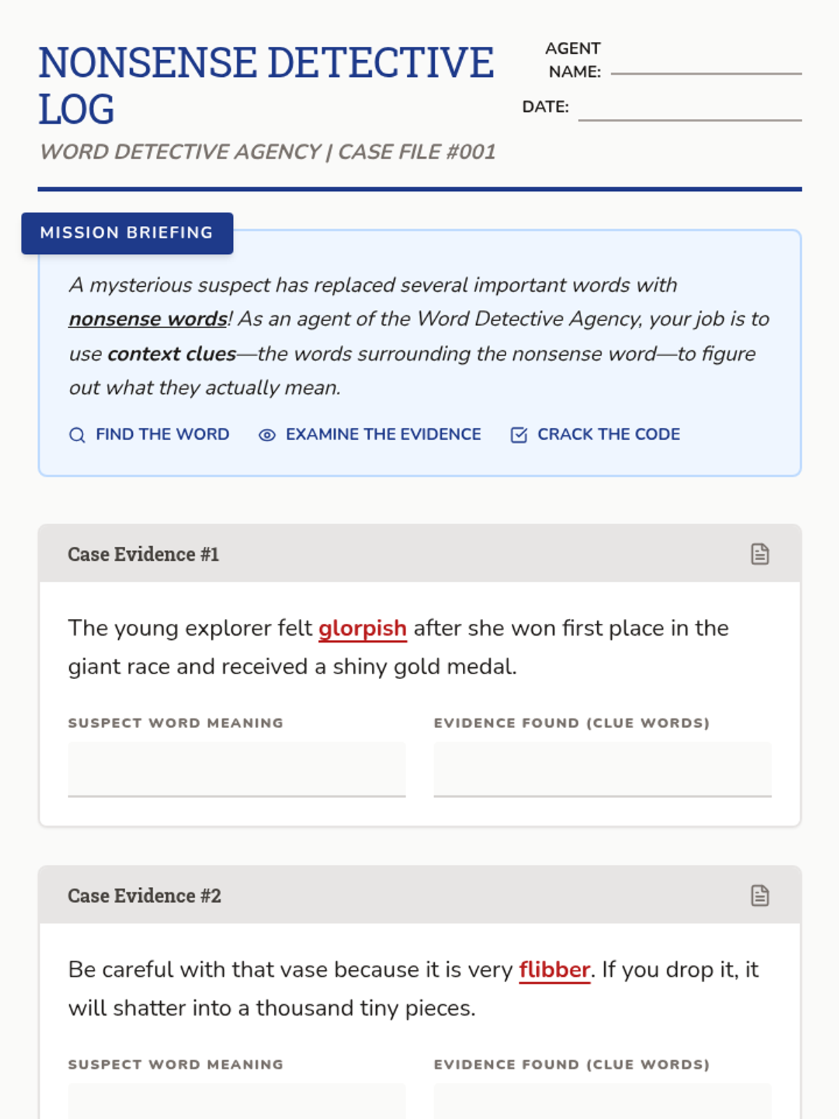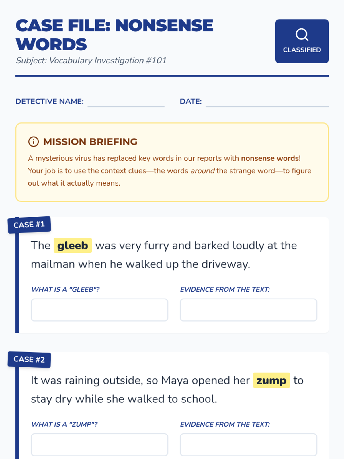 A game-based inquiry sequence where 3rd graders become vocabulary detectives. They progress from decoding nonsense words to mastering substitution and general inference strategies in narrative text, eventually crafting their own context clues.