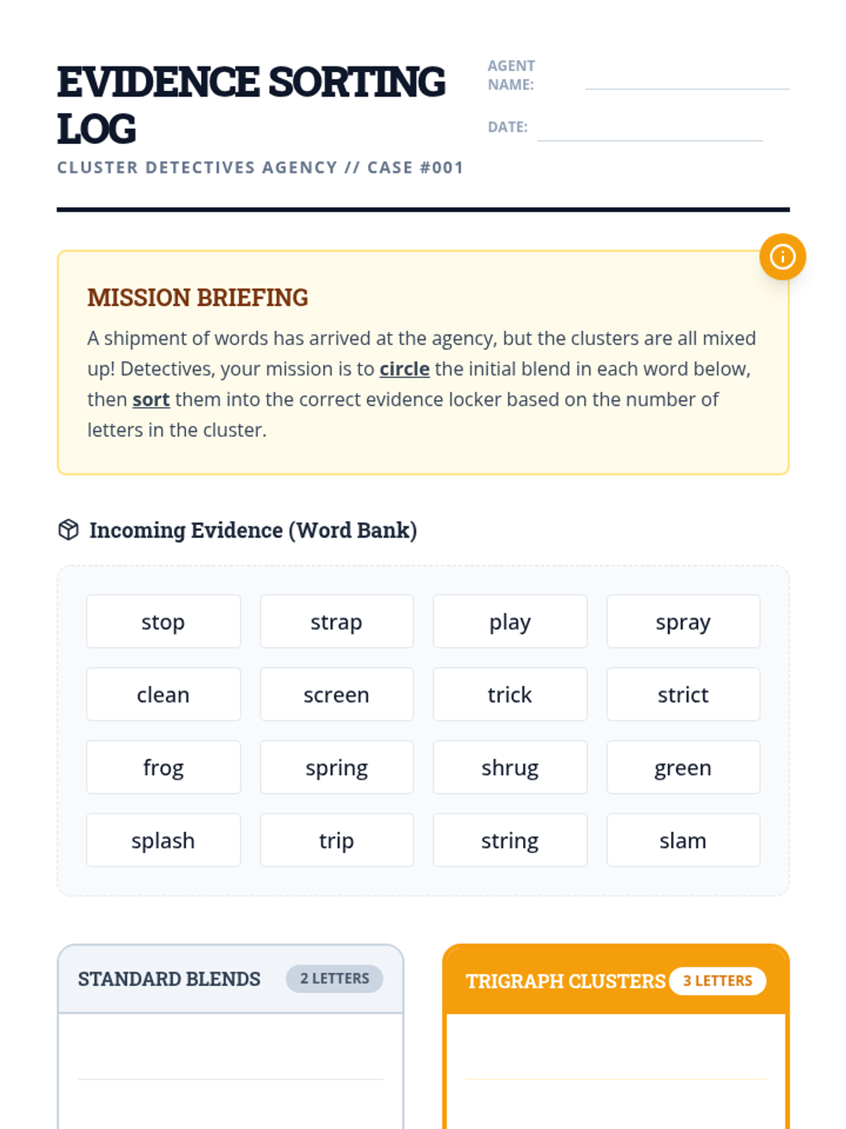 A comprehensive sequence for 3rd grade students to master complex consonant clusters, moving from 2-letter to 3-letter blends, multisyllabic word analysis, and final clusters through a 'Blend Detective' theme.
