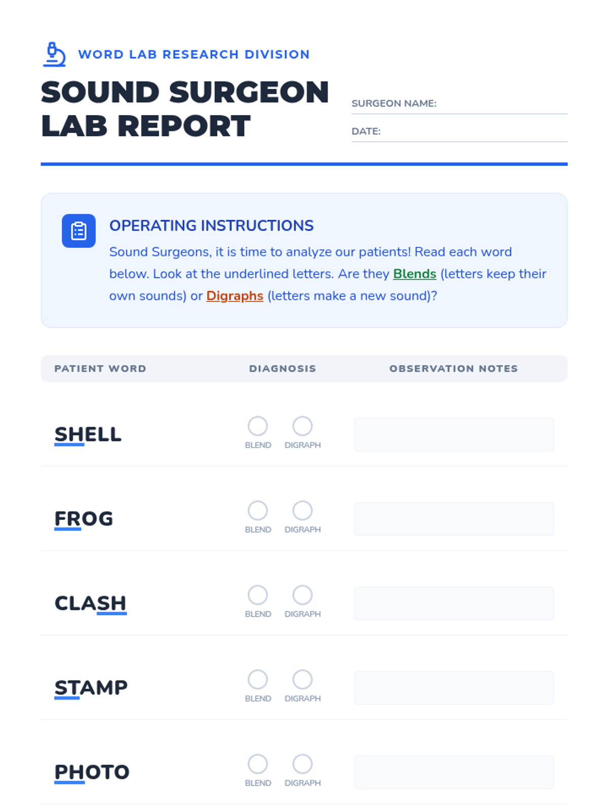 A comprehensive 3rd-grade phonics sequence focusing on the transition from basic consonant patterns to advanced blends, digraphs, and trigraphs within multisyllabic words. Students use a 'Word Lab' approach to dissect, analyze, and encode complex orthographic patterns, building decoding fluency and spelling accuracy.