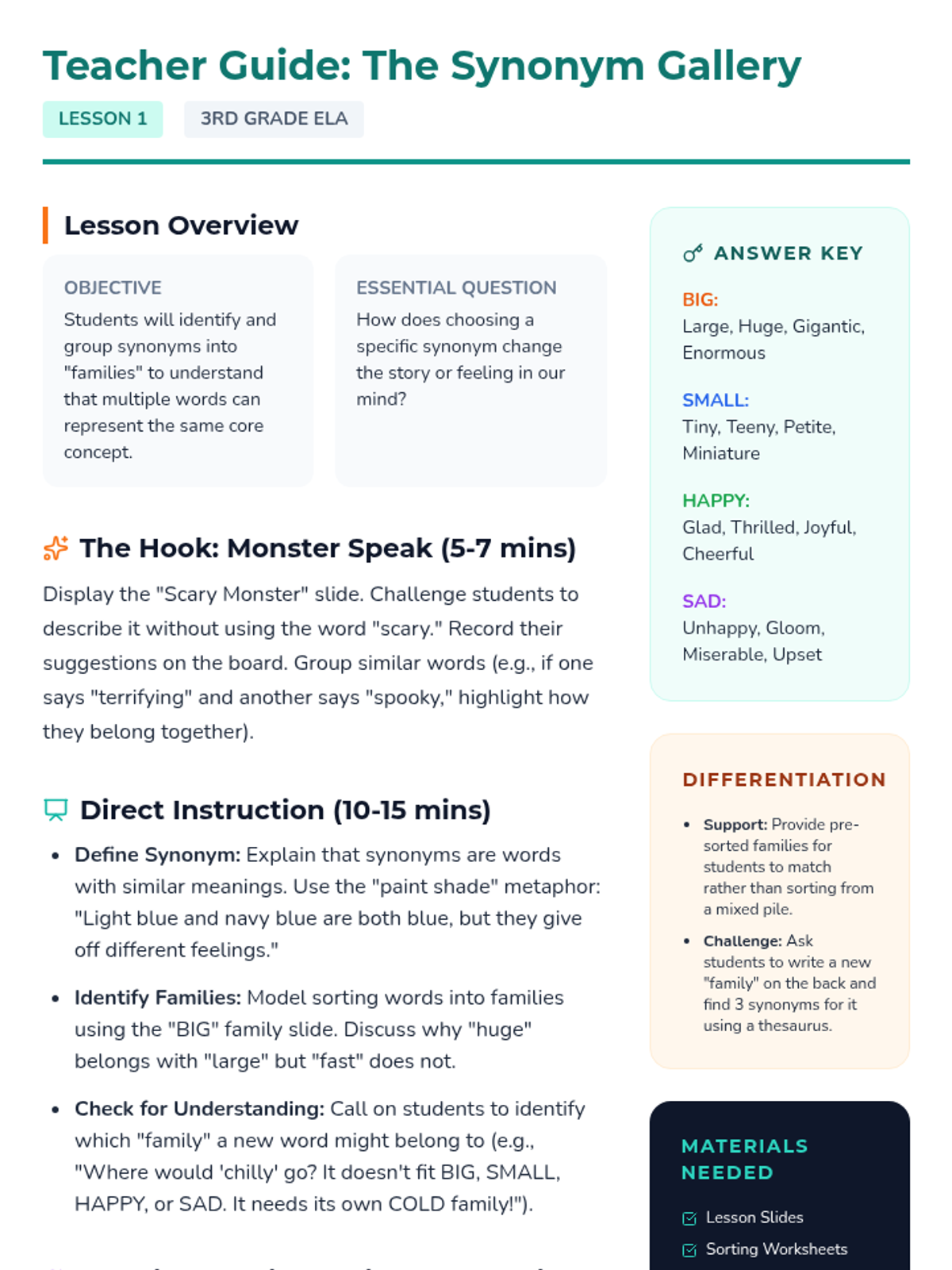 Students explore the subtleties of language by examining how related words carry different levels of intensity and emotion. They progress from grouping synonyms to ranking them on 'word thermometers' and revising text for precise, vivid communication.
