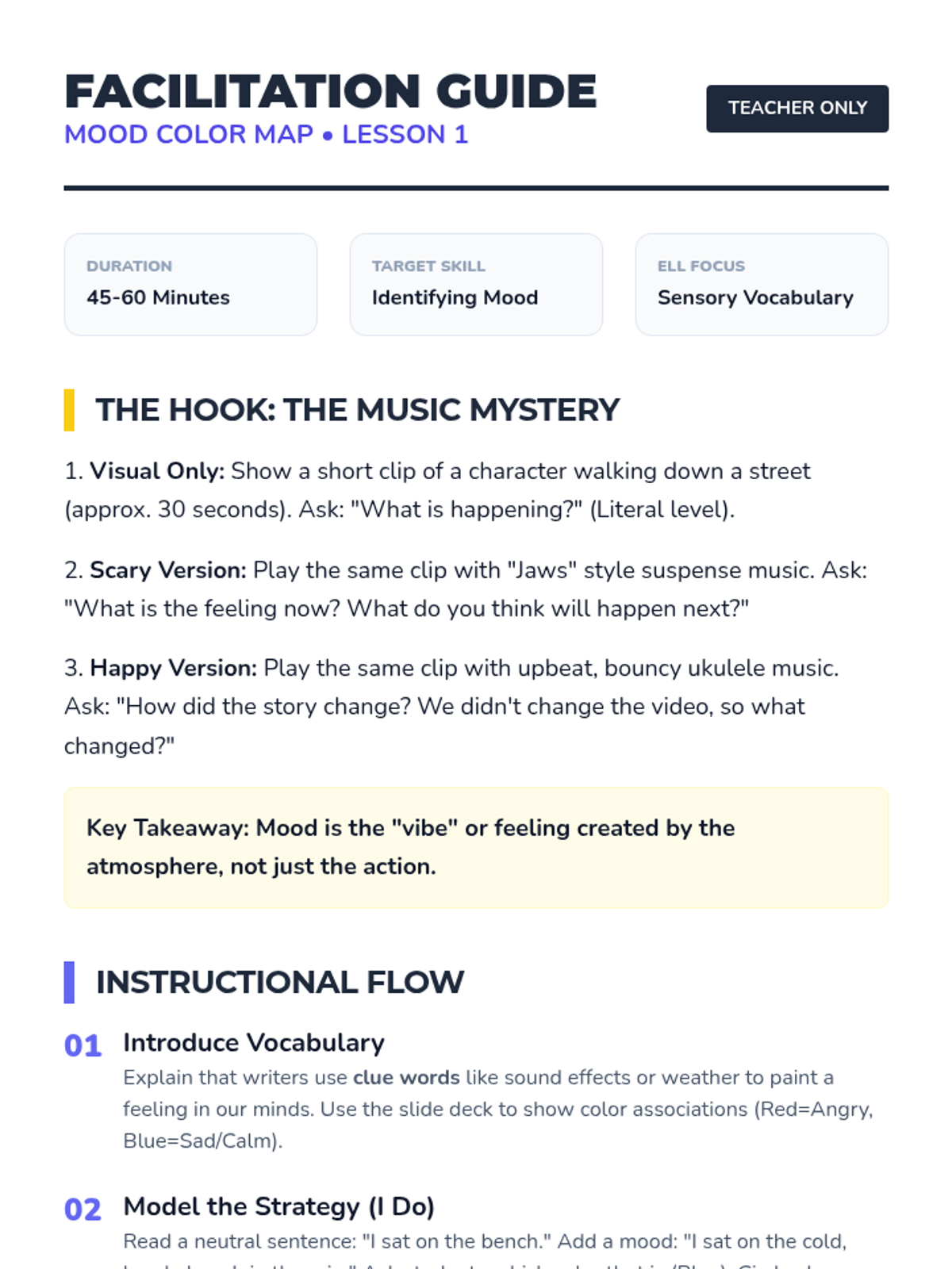 This sequence explores how word choice and perspective influence the tone and meaning of a text for intermediate 3rd Grade ELLs. Using concrete associations like color and sound, students learn to identify and manipulate mood, tone, and point of view.