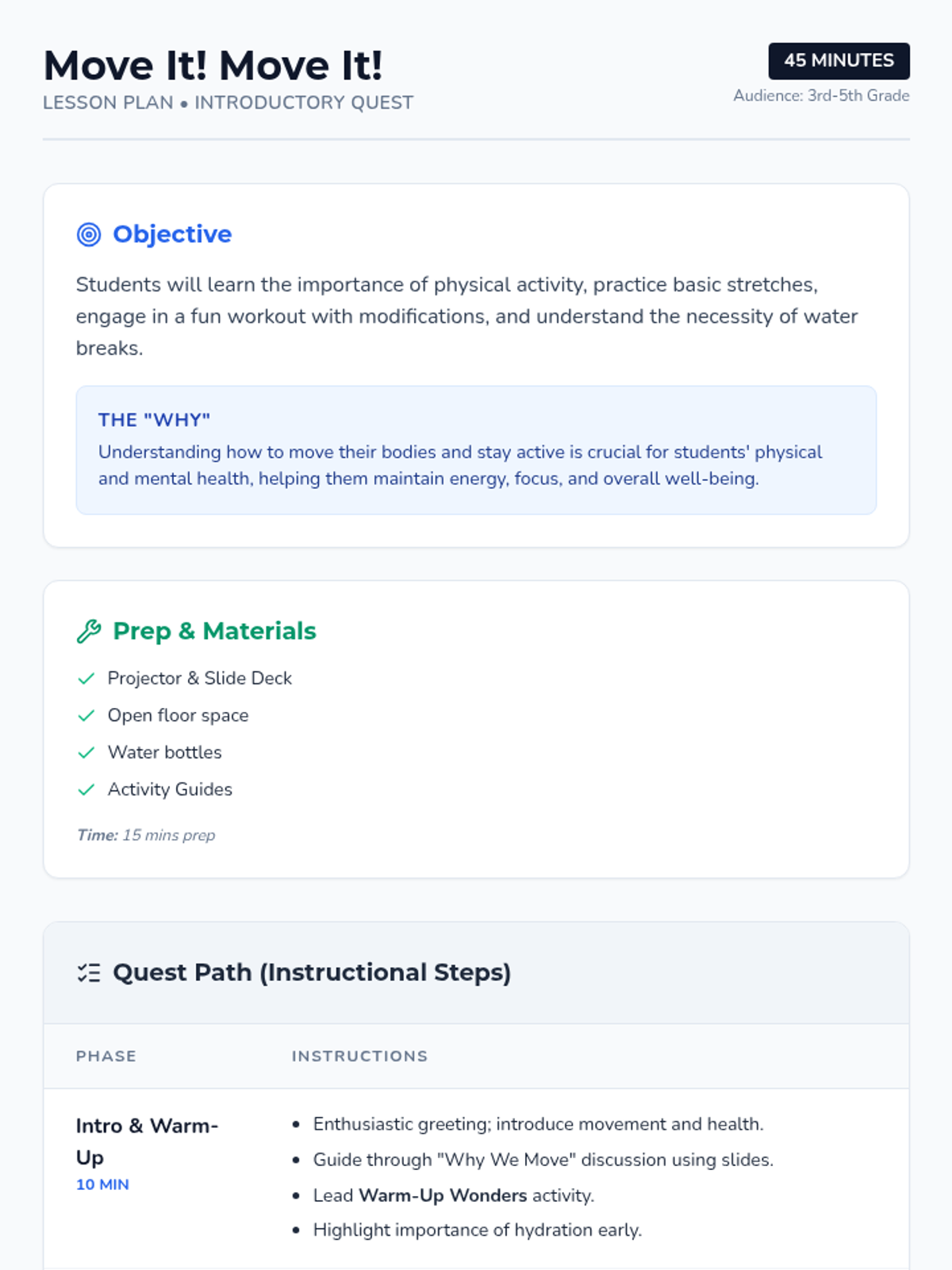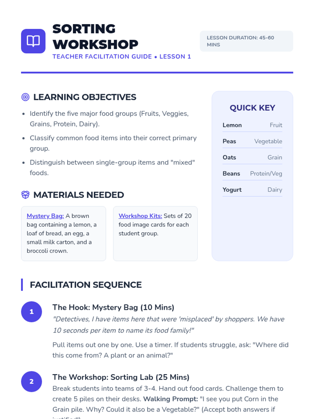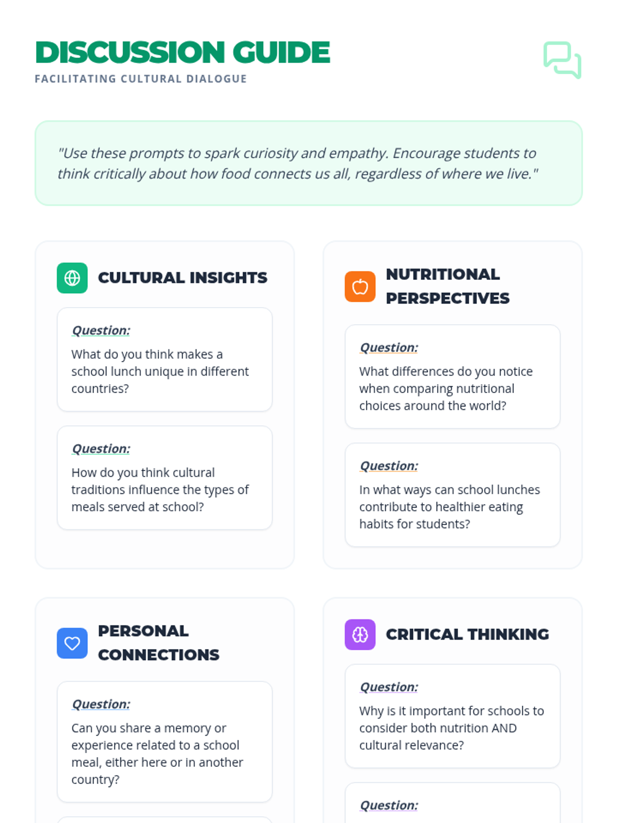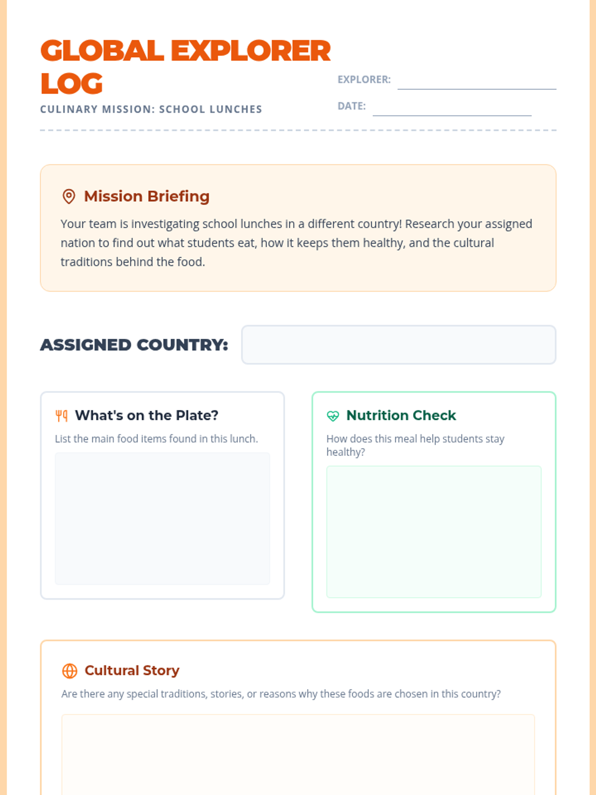 A 6-session culinary journey where 3rd and 4th graders explore flavors from Mexico, Italy, Japan, India, and Morocco while building kitchen skills, cultural awareness, and teamwork. Each session features a detailed lesson plan, a guided activity guide, and recipe handouts designed for Tier 2 small-group instruction.