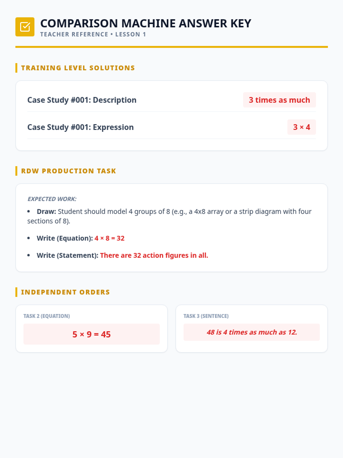 Comparison Machine Answer Key