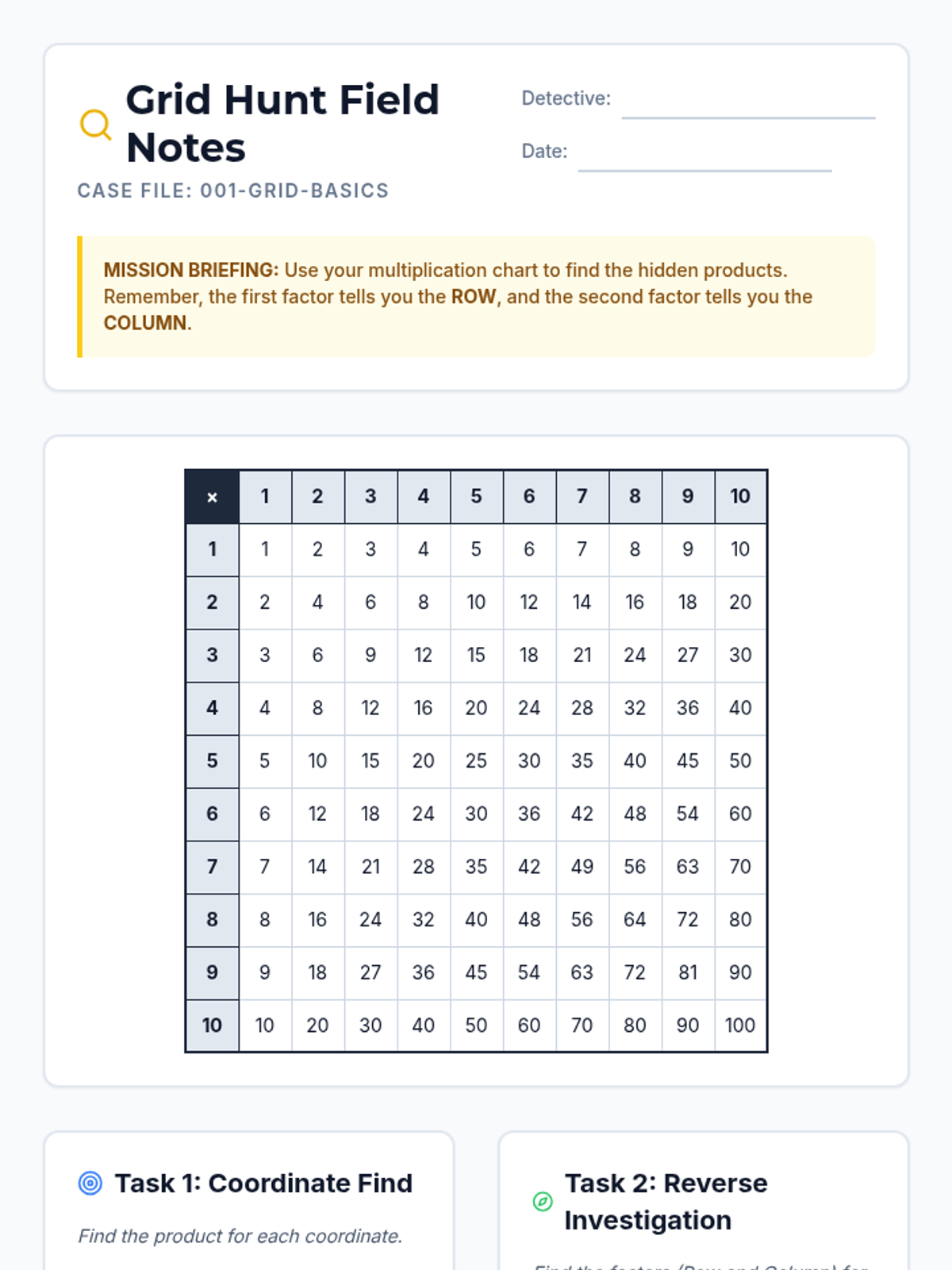 Grid Hunt Worksheet