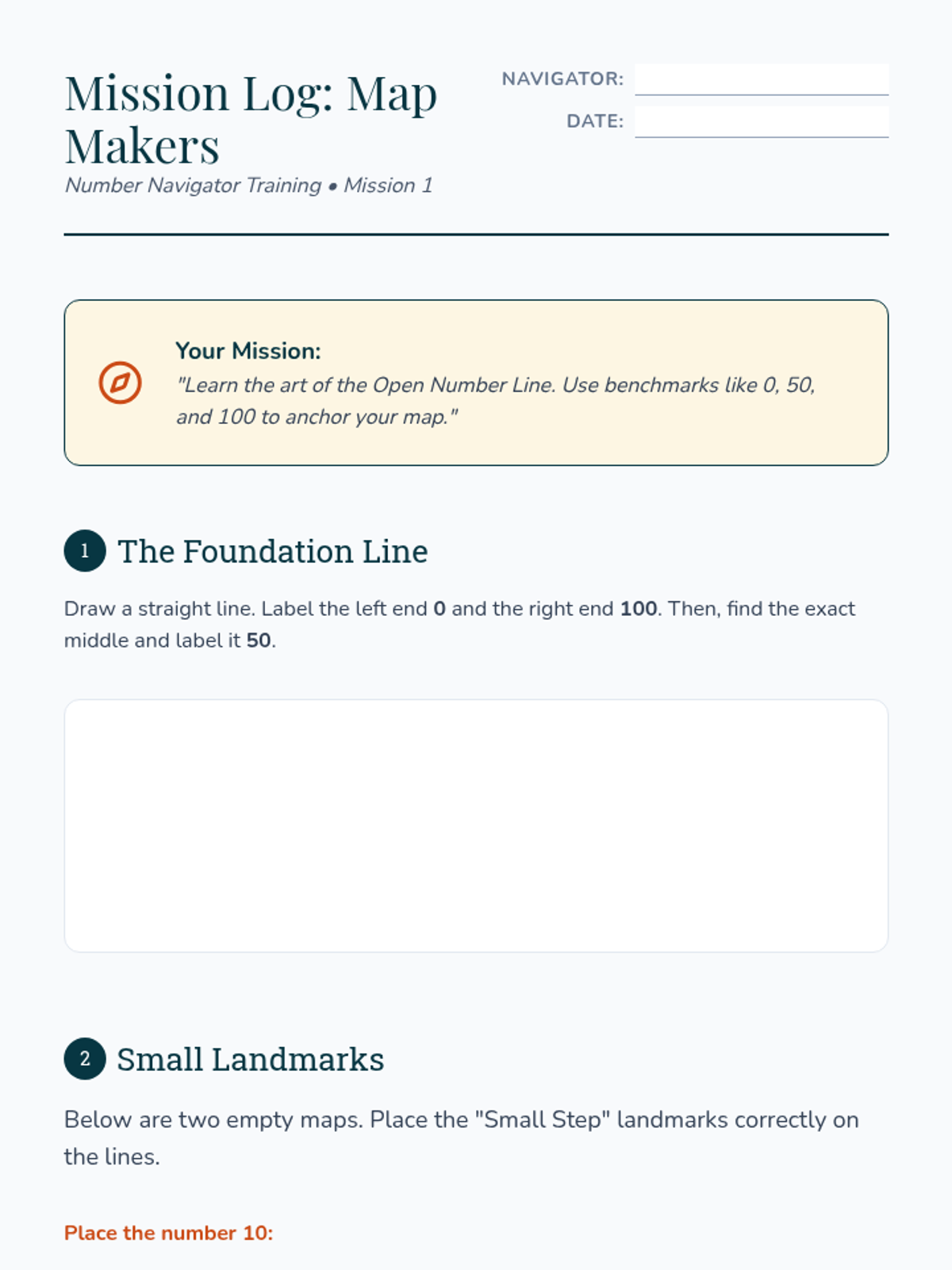 A 5-lesson unit for 3rd graders focused on using open number lines to visualize, place, and compare numbers. Students act as 'Number Navigators' to master proportional reasoning and magnitude.